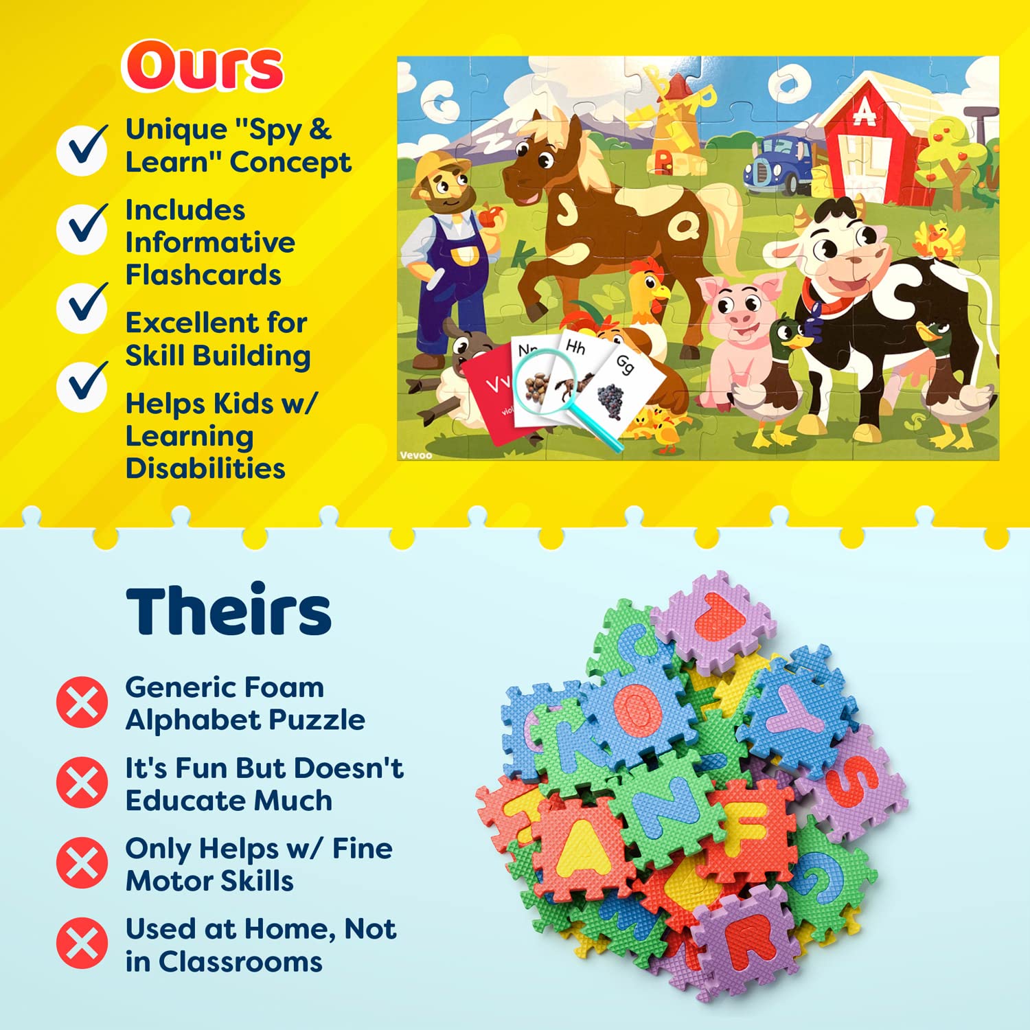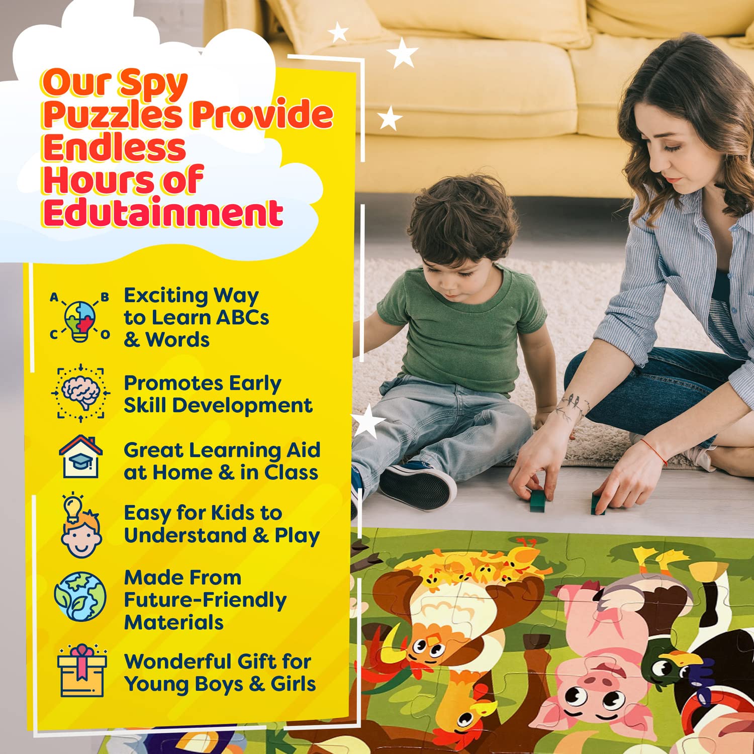 I Spy Number Puzzle With Flashcards And Magnifying Glass 2Ft X 3Ft-Large 48 Piece Candy Land Jumbo Floor Puzzles For Kids Ages 3