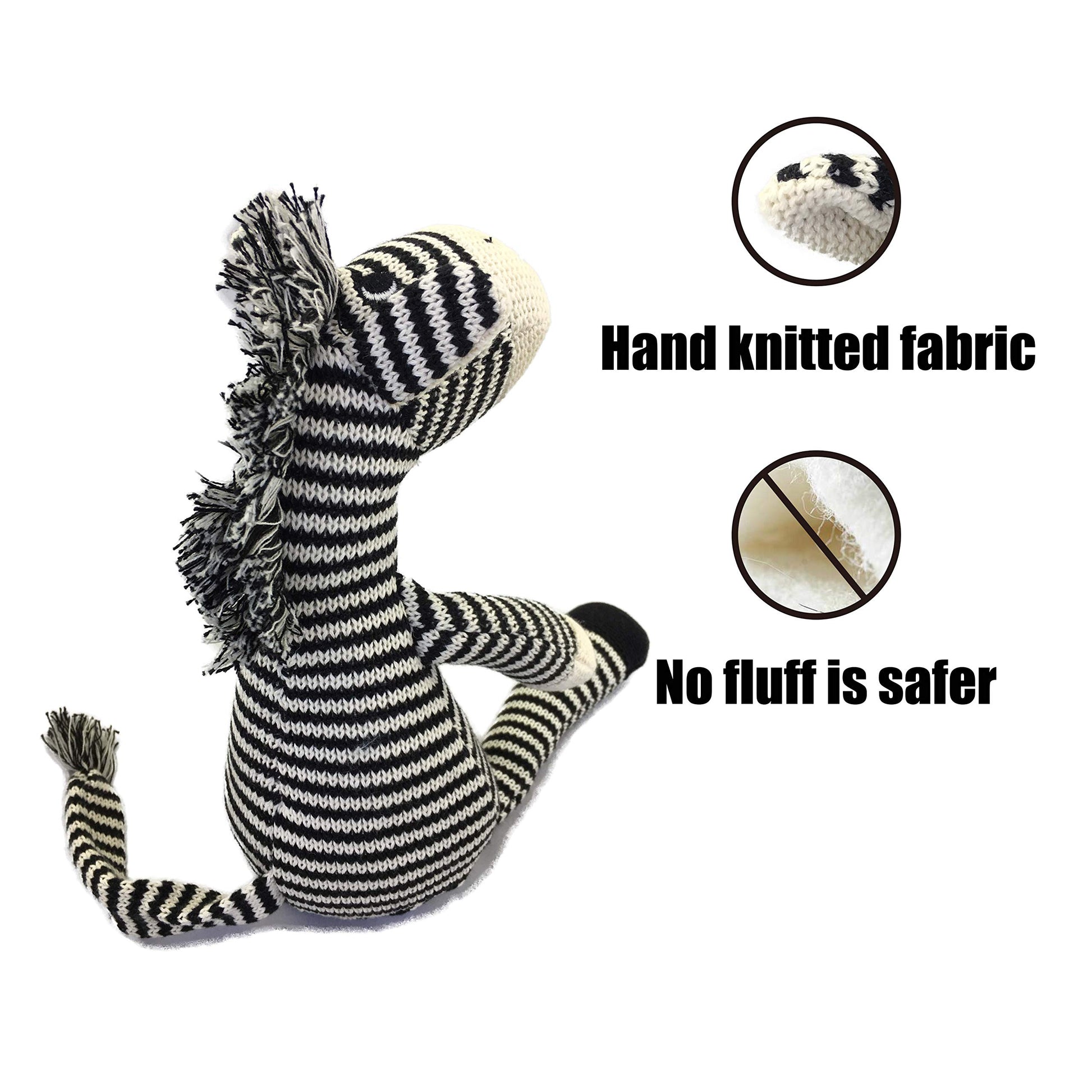 - Q: What makes this zebra stuffed animal unique? A: This zebra stuffed animal features a delightful hand-knitted design with a black and white color scheme that stands out, along with its cute cartoon-like appearance, making it a unique gift or toy.