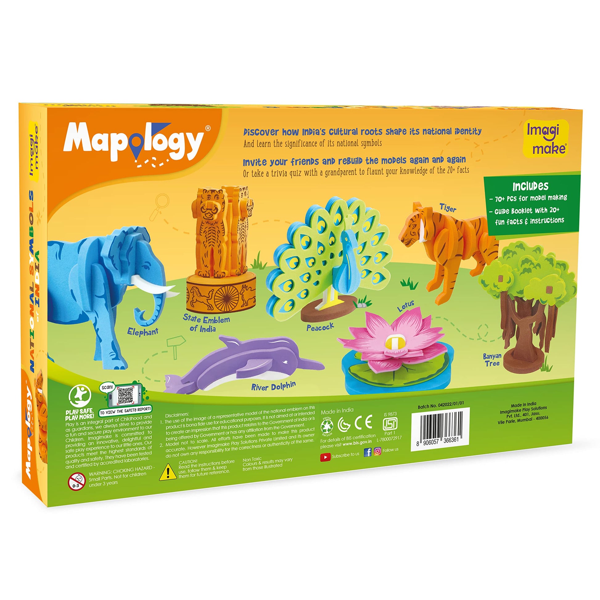 Imagimake Mapology National Symbols Of India - Construction Set - Make 7 Models - Educational Toys For 5 Years+, 70 Pieces,Multi