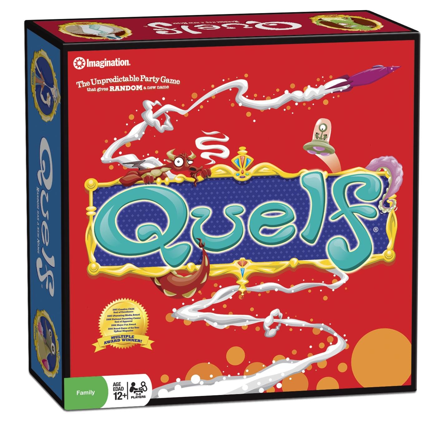 • Q: What age group is the Imagination Quelf Board Game suitable for? A: The Imagination Quelf Board Game is recommended for players aged 12 and up, making it a great choice for family game nights and gatherings with friends.