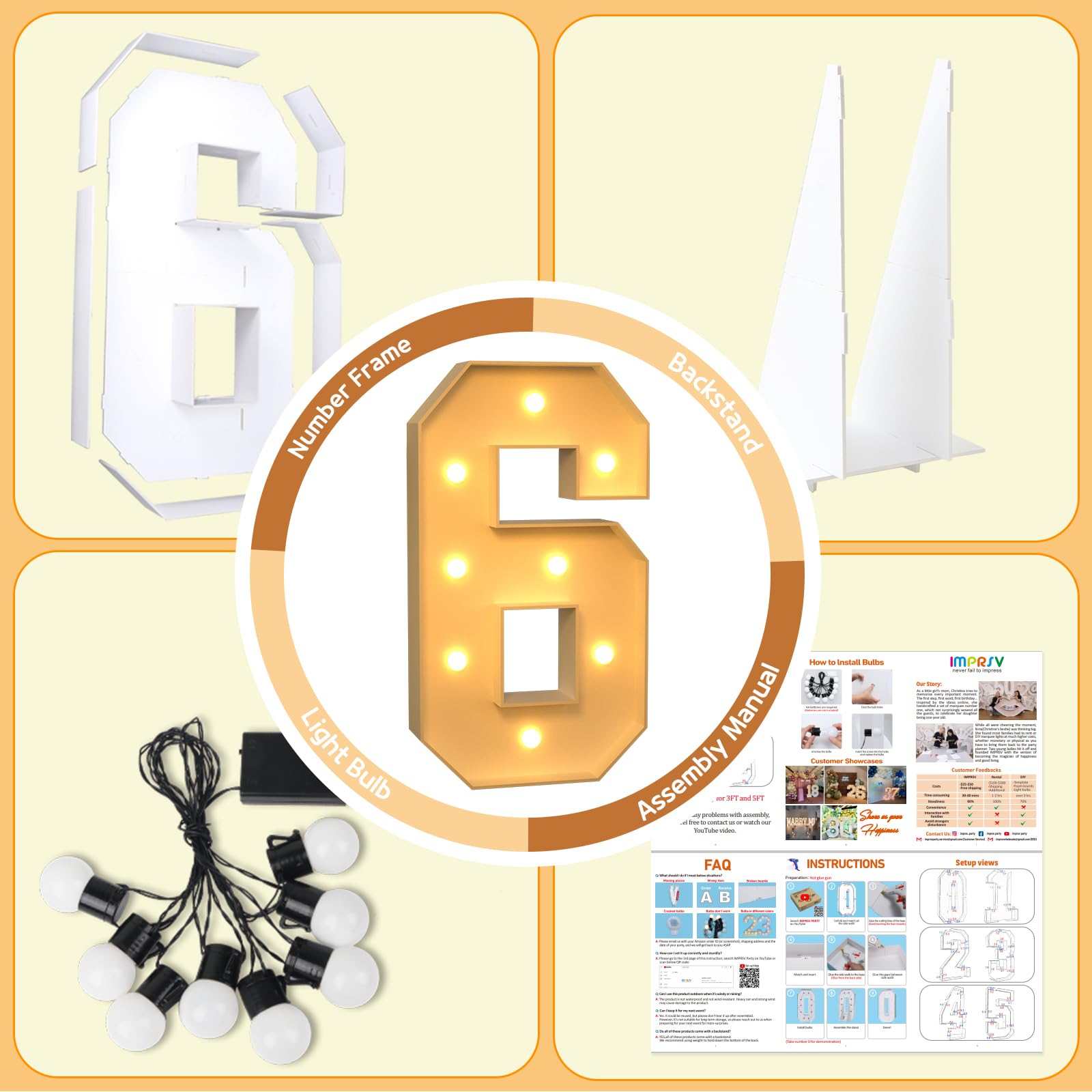 - Q: Are the light up numbers suitable for outdoor use? A: While the imprsv light up numbers are made of durable foam board, they are best suited for indoor use or limited outdoor settings. Ensure they are protected from adverse weather conditions to maintain their quality.