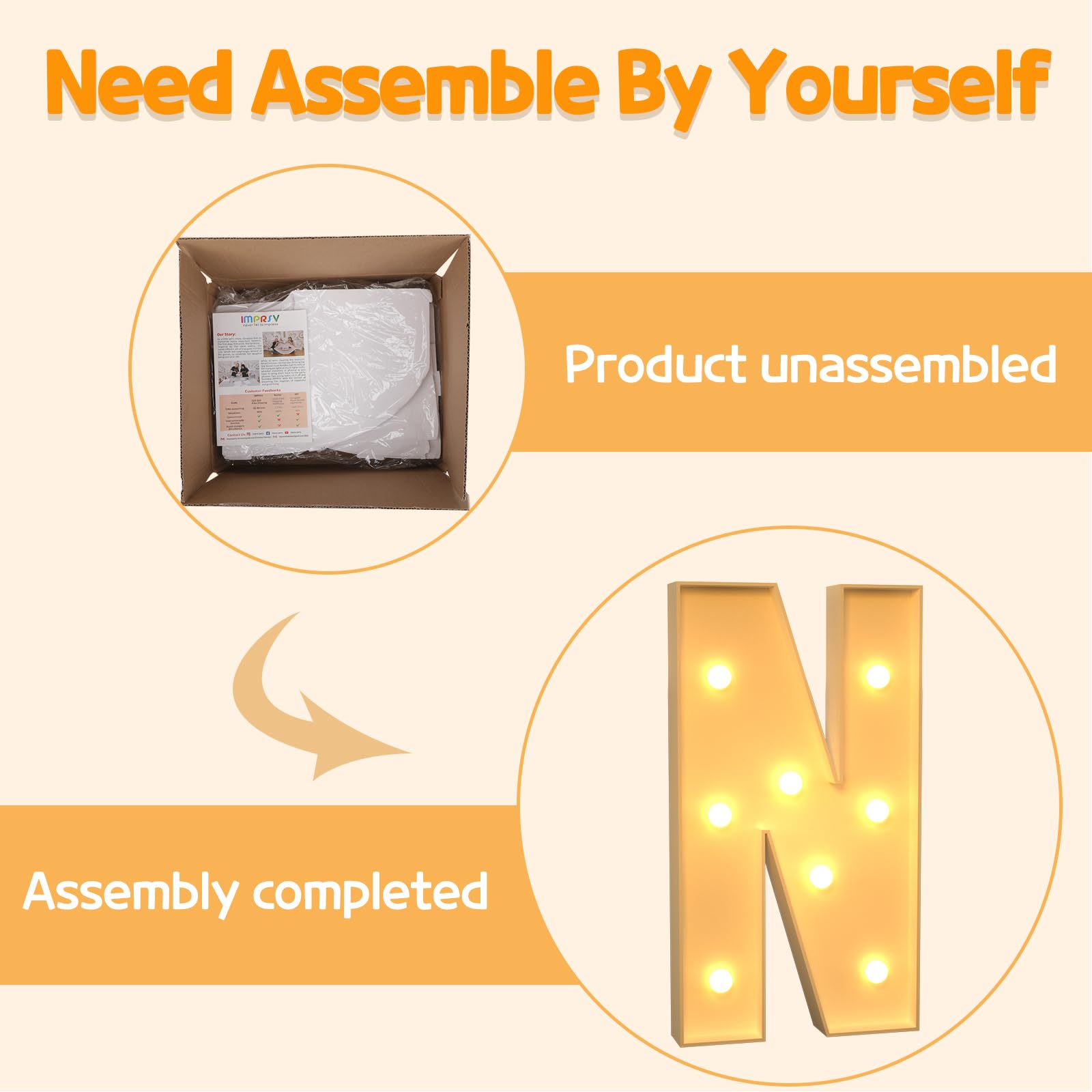 - Q: How do I assemble the 3FT marquee light up letters? A: The assembly of the 3FT marquee light up letters is simple. Just follow the numbered instructions to align the components, insert the bottom plate, and secure it with a hot glue gun. This easy splicing mode makes setup quick and hassle-free.