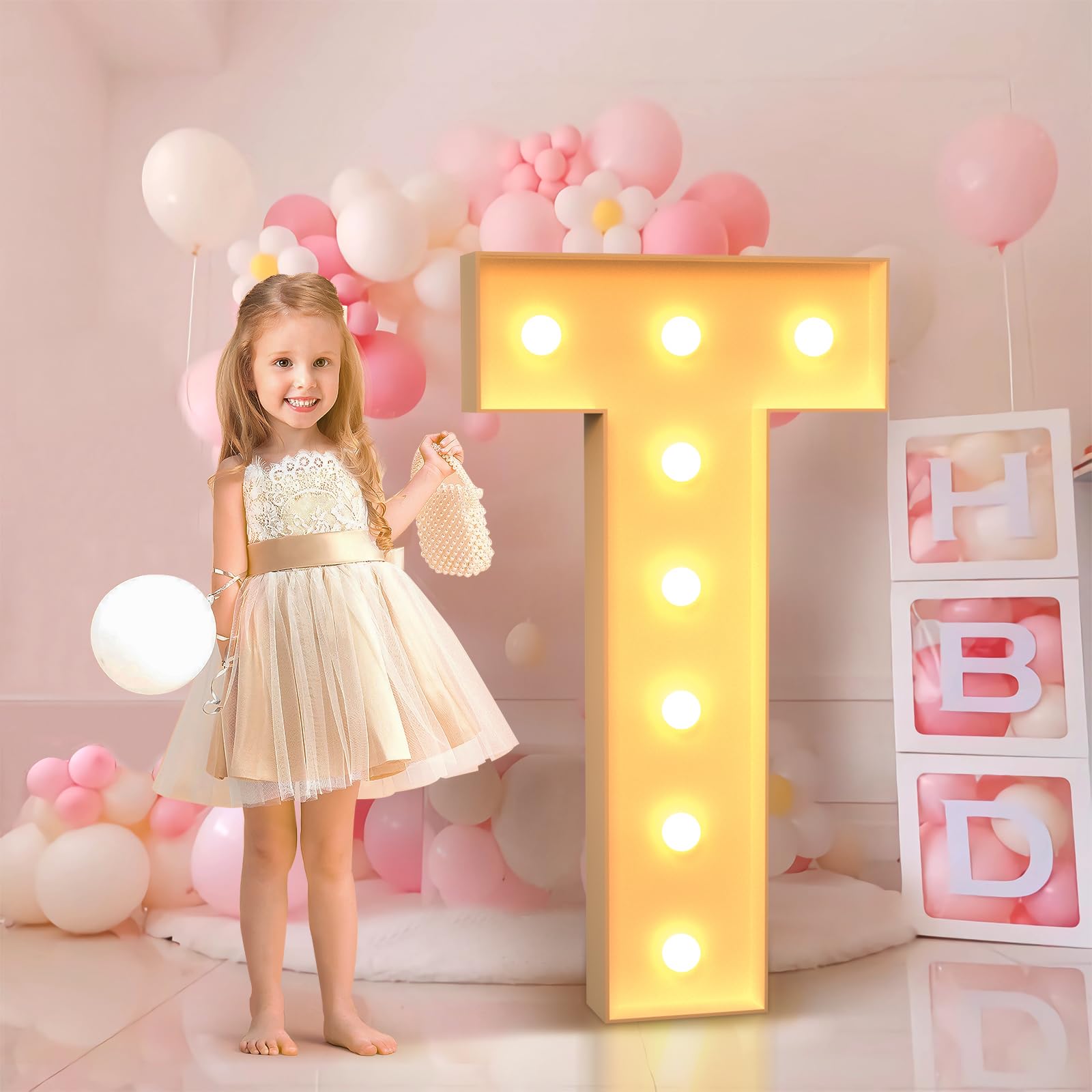 Imprsv 3Ft Marquee Light Up Letters T, Large Light Up Letters, Big Marquee Letters For Party Decorations Baby Shower Anniversary