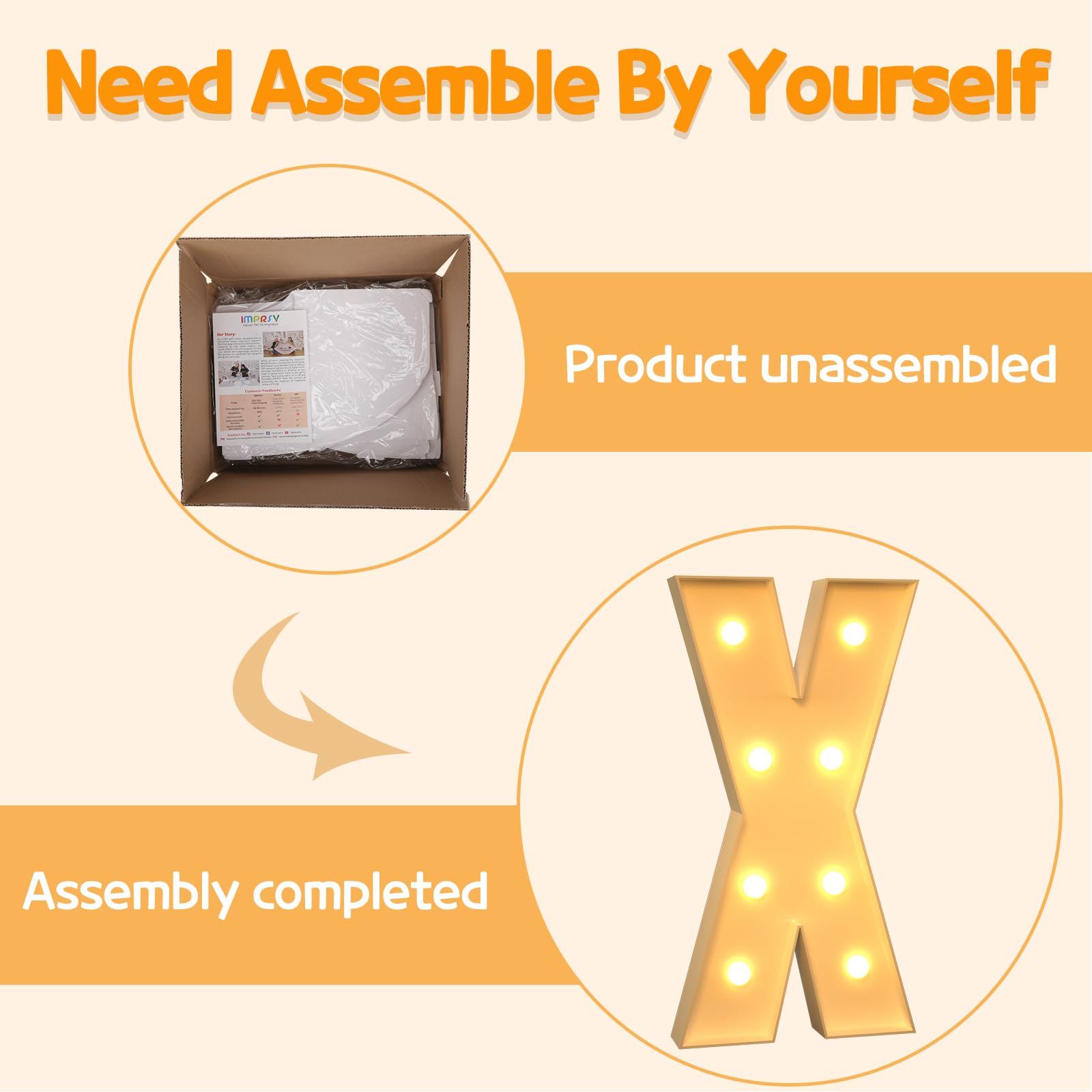 - Q: How do I assemble the marquee light up letters? A: Assembling the marquee light up letters is straightforward. Simply follow the numbered instructions provided in the package to align the pieces and insert the bottom plate. Use a hot glue gun to reinforce the structure, and you'll have your letters ready in no time.