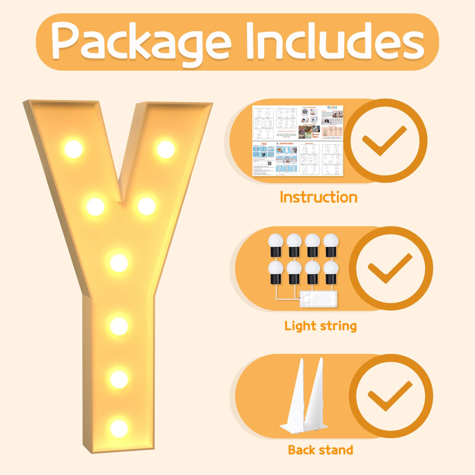- Q: Are the light strings included with the marquee letters? A: Yes, the imprsv marquee light up letters come equipped with matching light strings, ensuring you have everything you need for a hassle-free setup.