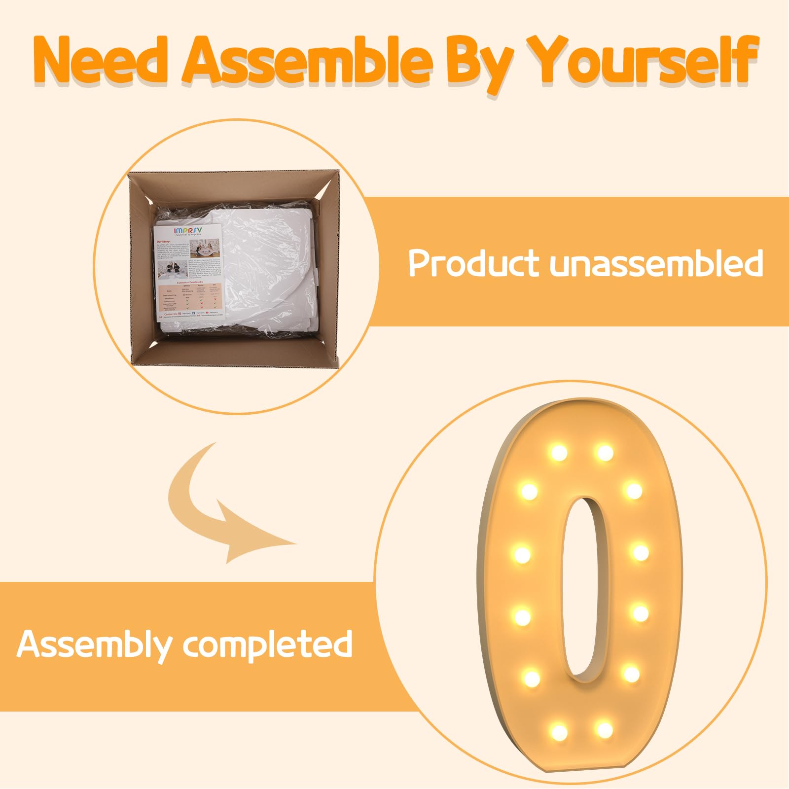 - Q: How do I assemble the imprsv 4FT Acrylic Light Up Letter O? A: Assembling the imprsv 4FT Acrylic Light Up Letter O is simple. Just follow the numbered instructions included in the package to align and insert the bottom plate. Use a hot glue gun to reinforce the structure, and you'll have it ready in no time!