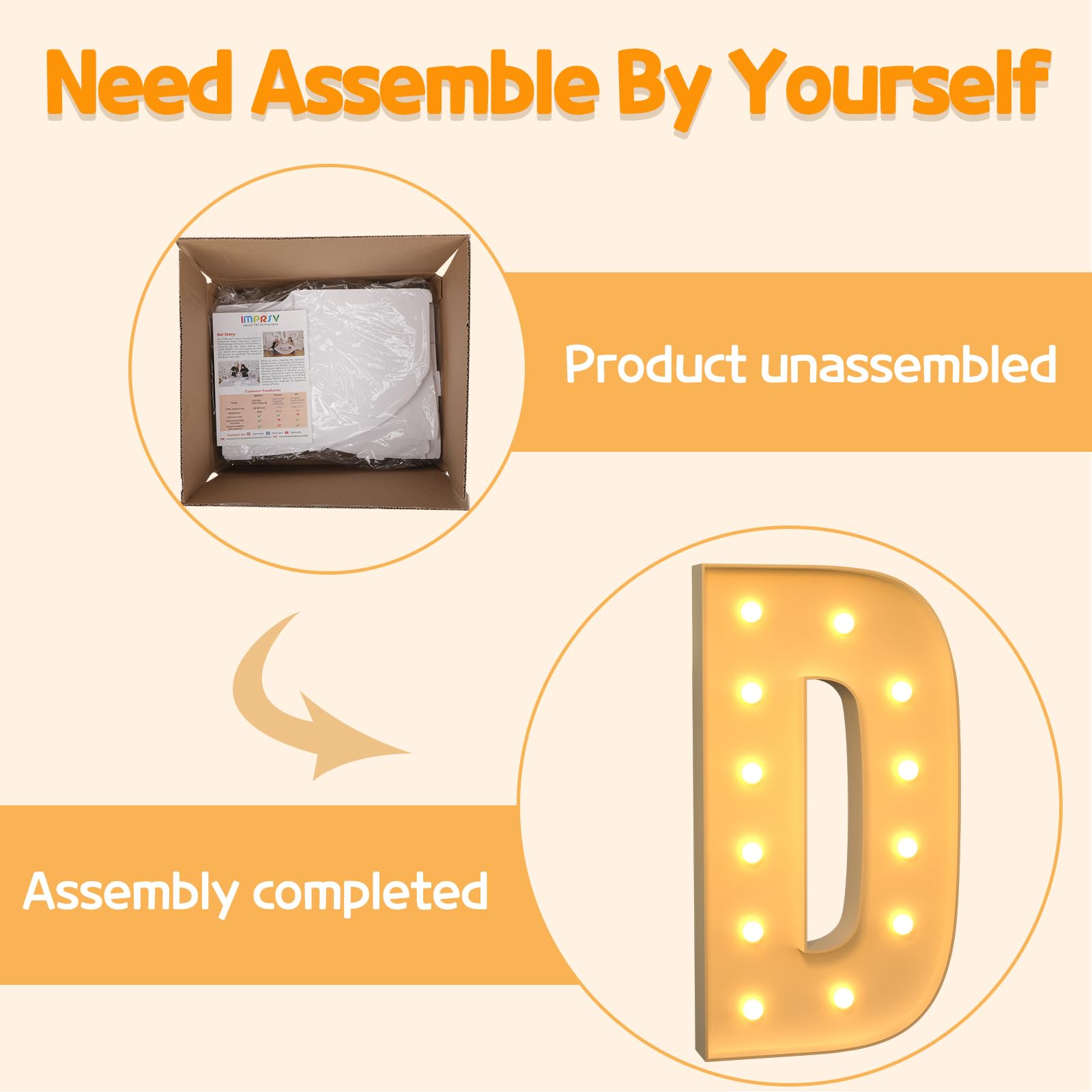 - Q: How do I assemble the light up letters for my event? A: Assembly is simple! Just follow the numbered instructions provided, align the pieces, insert the bottom plate, and reinforce with a hot glue gun. You'll have your marquee letter ready in no time!