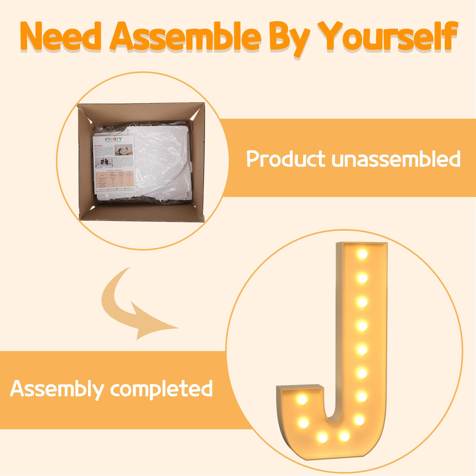 - Q: How do I assemble the marquee light up letters? A: Assembly is simple! Just follow the numbered instructions to align the pieces, insert the bottom plate, and secure it with a hot glue gun for added stability.