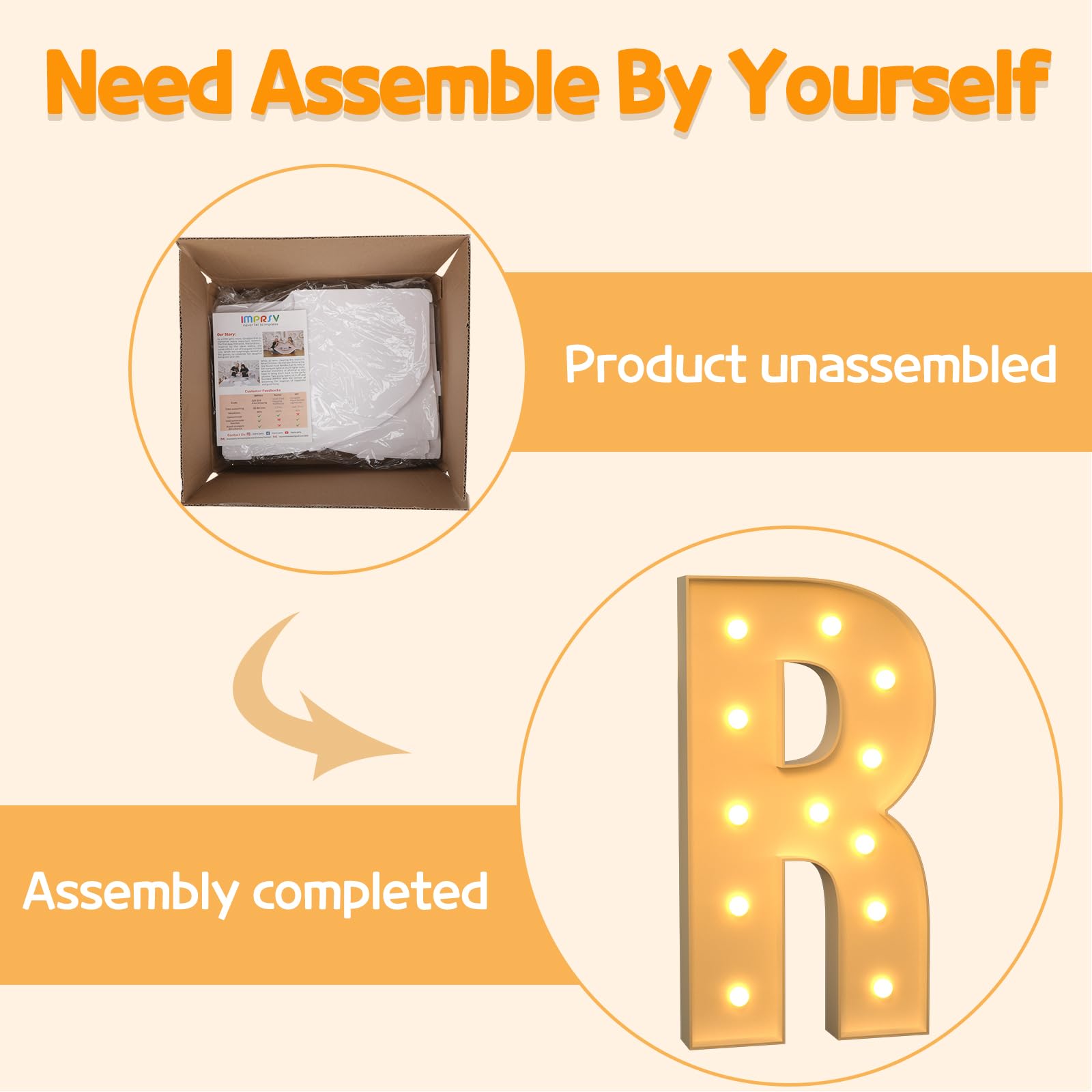 - Q: How do I assemble the 4FT marquee light up letters? A: Assembling the 4FT marquee light up letters is straightforward. Follow the numbered instructions provided to align and insert the bottom plate into the foam board. Use a hot glue gun for reinforcement, and you'll have your letters ready in no time.