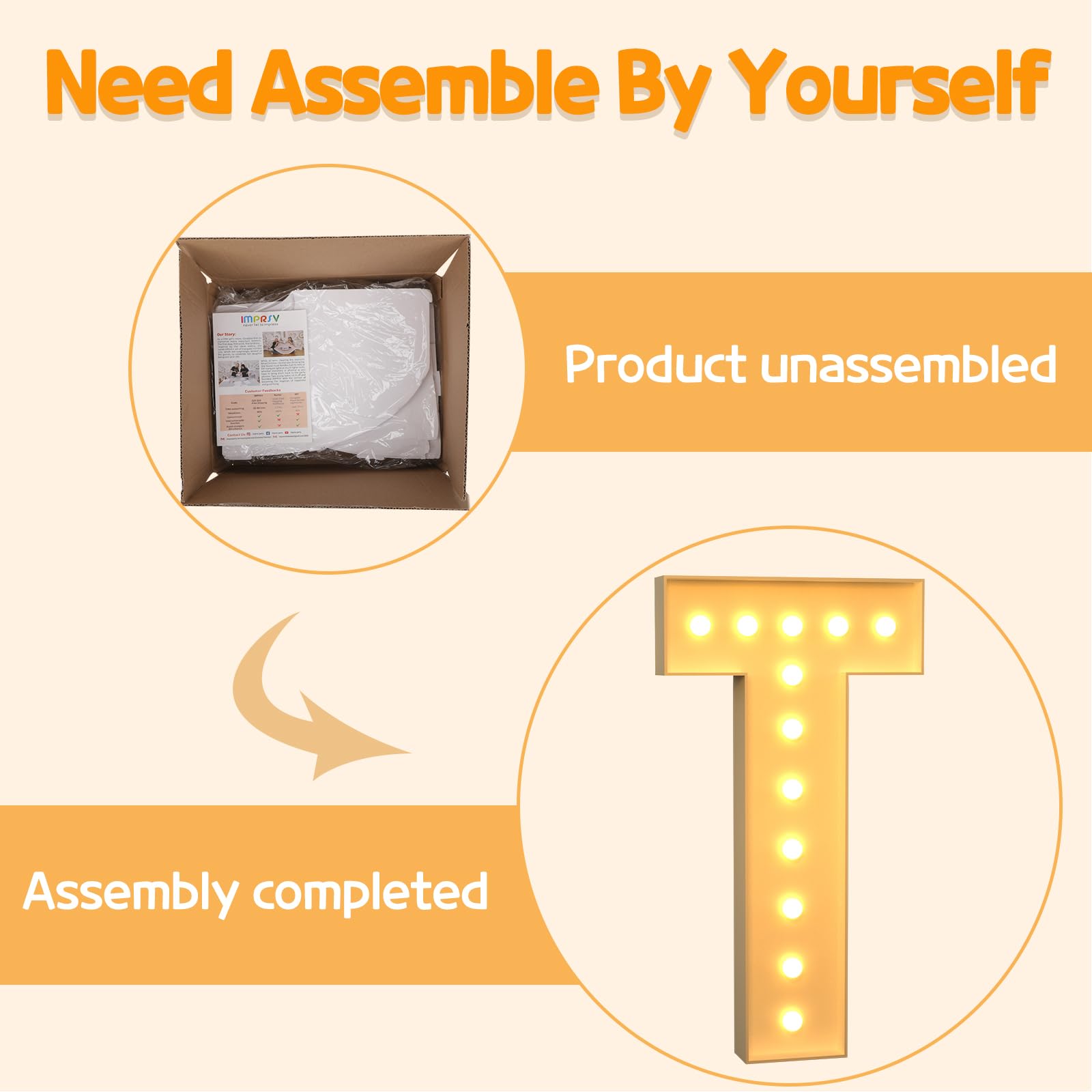 - Q: How do I assemble the 4FT Marquee Light Up Letters? A: Assembling the 4FT Marquee Light Up Letters is simple. Follow the numbered instructions provided to align the pieces, insert the bottom plate, and reinforce it with a hot glue gun. No special skills are required, making it easy for anyone to set up.