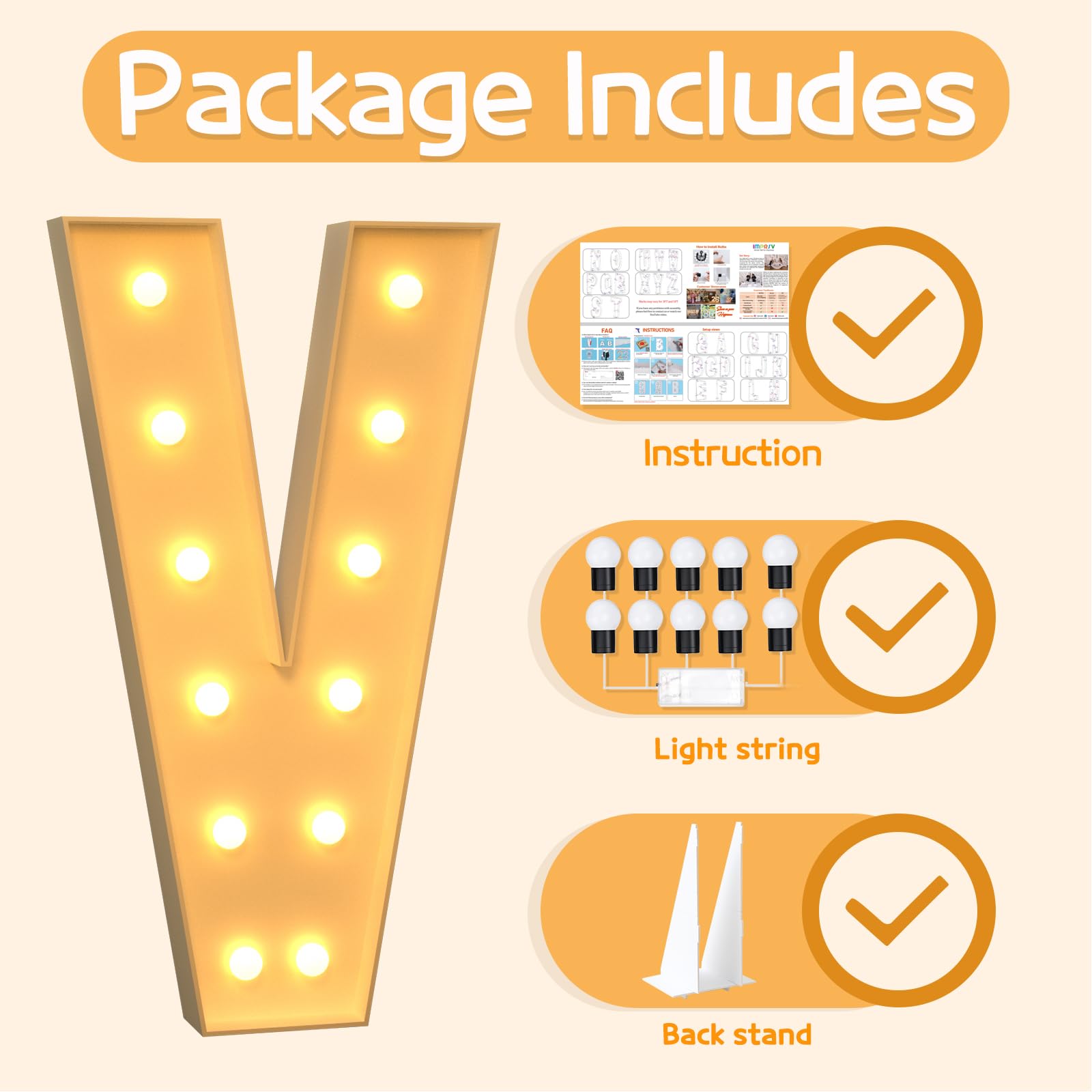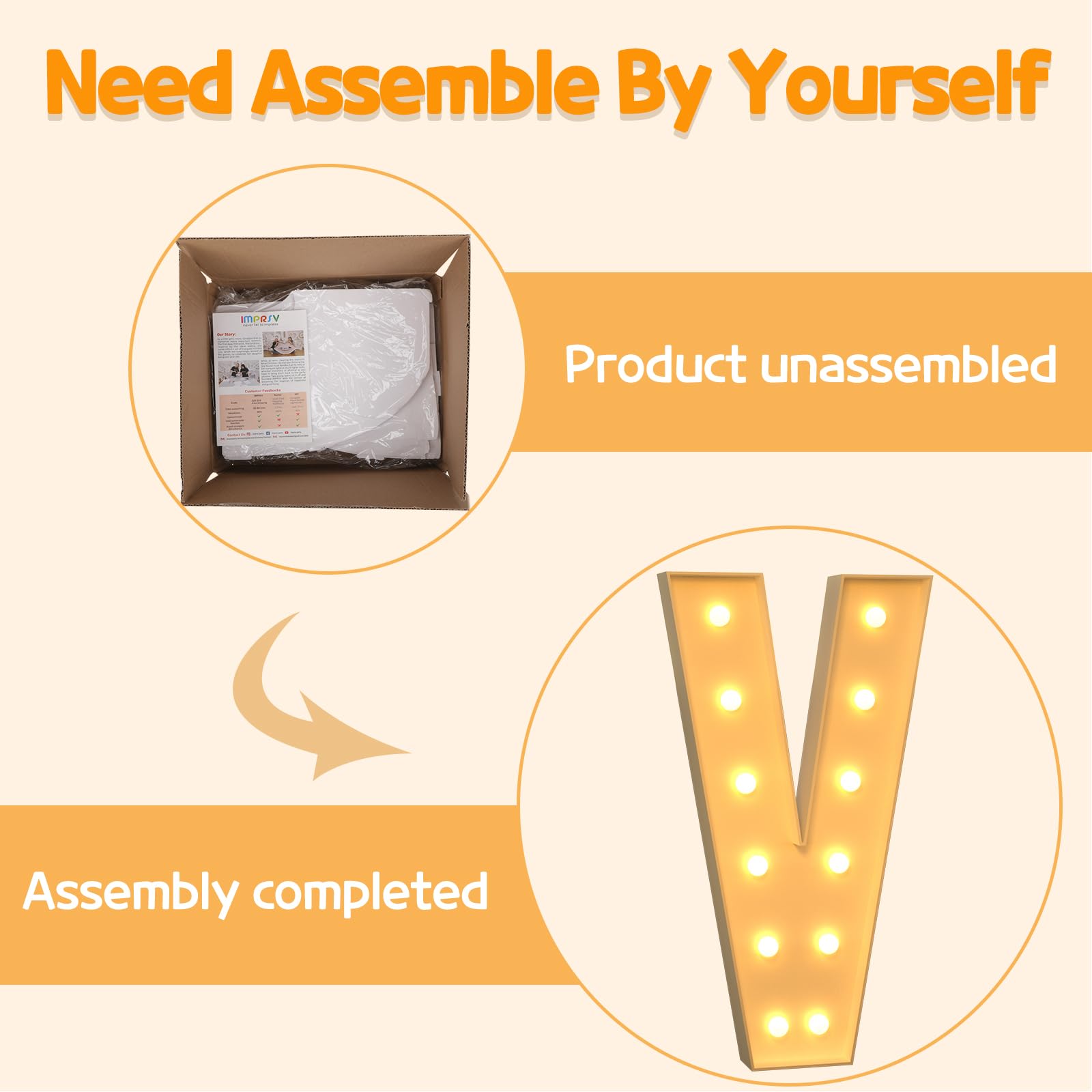 - Q: How do I assemble the 4FT marquee light up letters? A: Assembling the 4FT marquee light up letters is simple. The letters are made from foam board and come with a splicing mode. Follow the numbered instructions to align the pieces, insert the bottom plate, and reinforce it with a hot glue gun. Once completed, your marquee letter will be ready to shine!