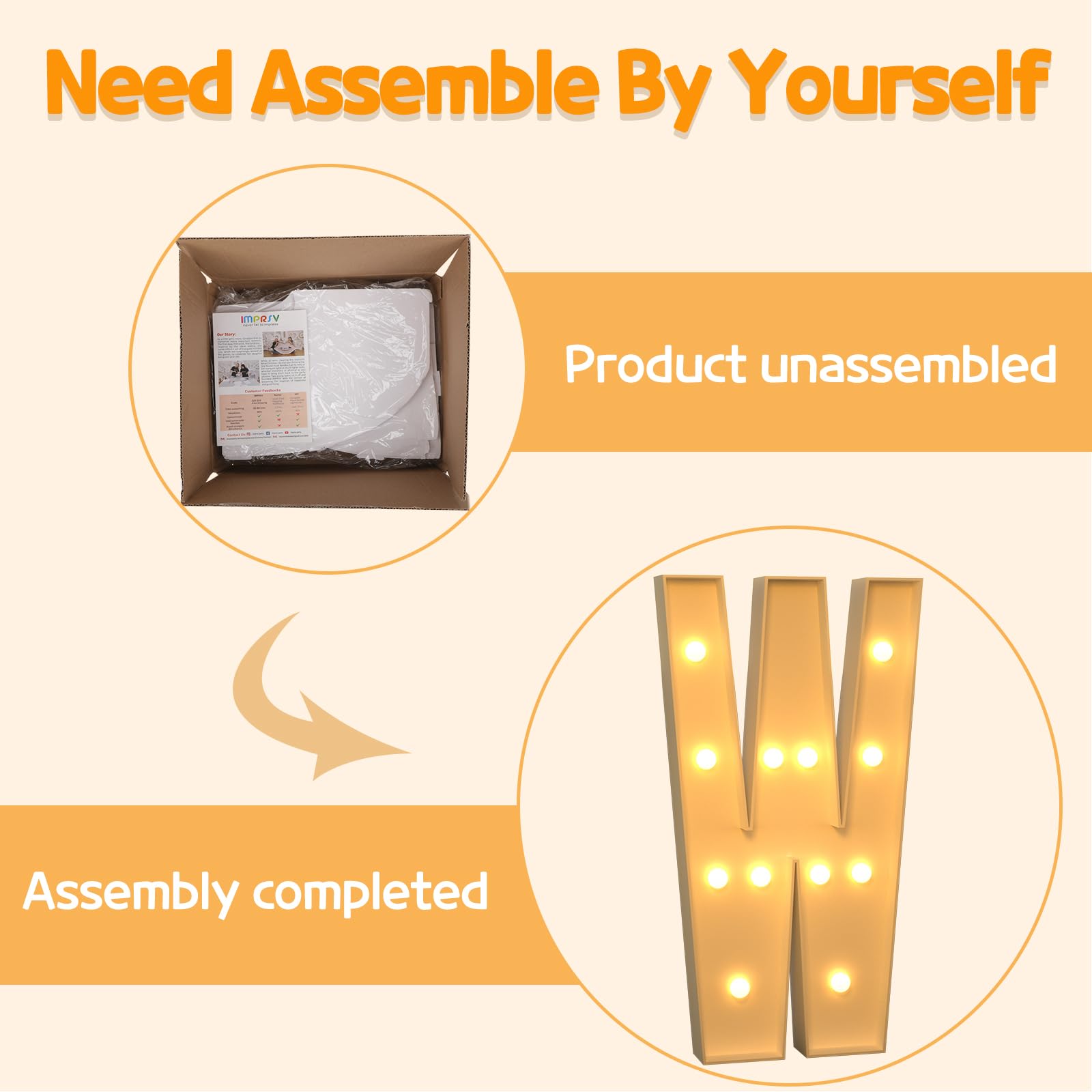 - Q: How do I assemble the imprsv 4FT Marquee Light Up Letters? A: The assembly of the imprsv 4FT Marquee Light Up Letters is straightforward. Simply follow the numbered instructions provided, align the pieces, insert the bottom plate, and use a hot glue gun to reinforce the structure. You'll have your letters ready in no time!