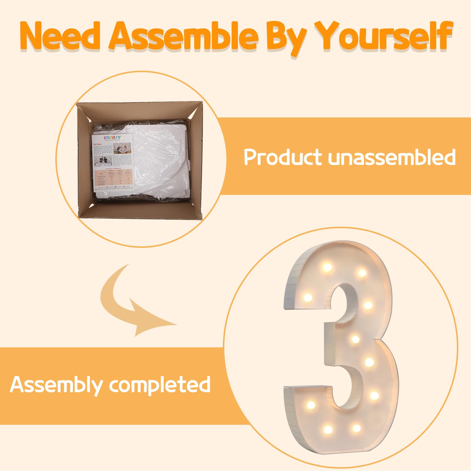 - Q: How do I assemble the 4FT marquee numbers? A: The 4FT marquee numbers are designed for easy assembly. Simply follow the numbered instructions to align and insert the bottom plate, then reinforce it with a hot glue gun. This ensures a sturdy setup for your event.