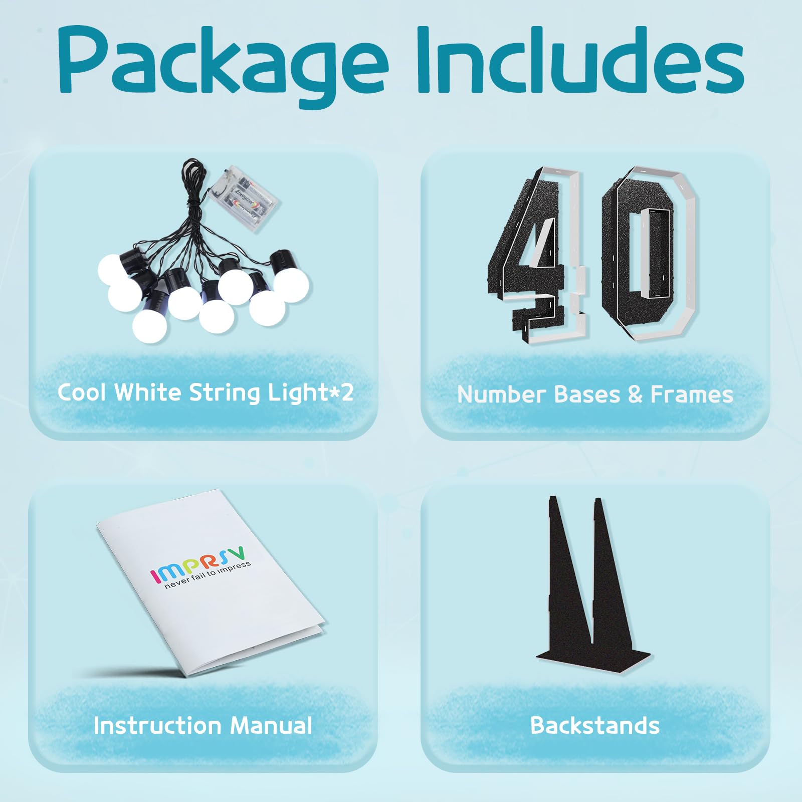 Imprsv Black 40Th-Birthday Decorative Signage: Large 3Ft Light Up Number 40, Plastic, Rectangular, Modern, Decoration For Women