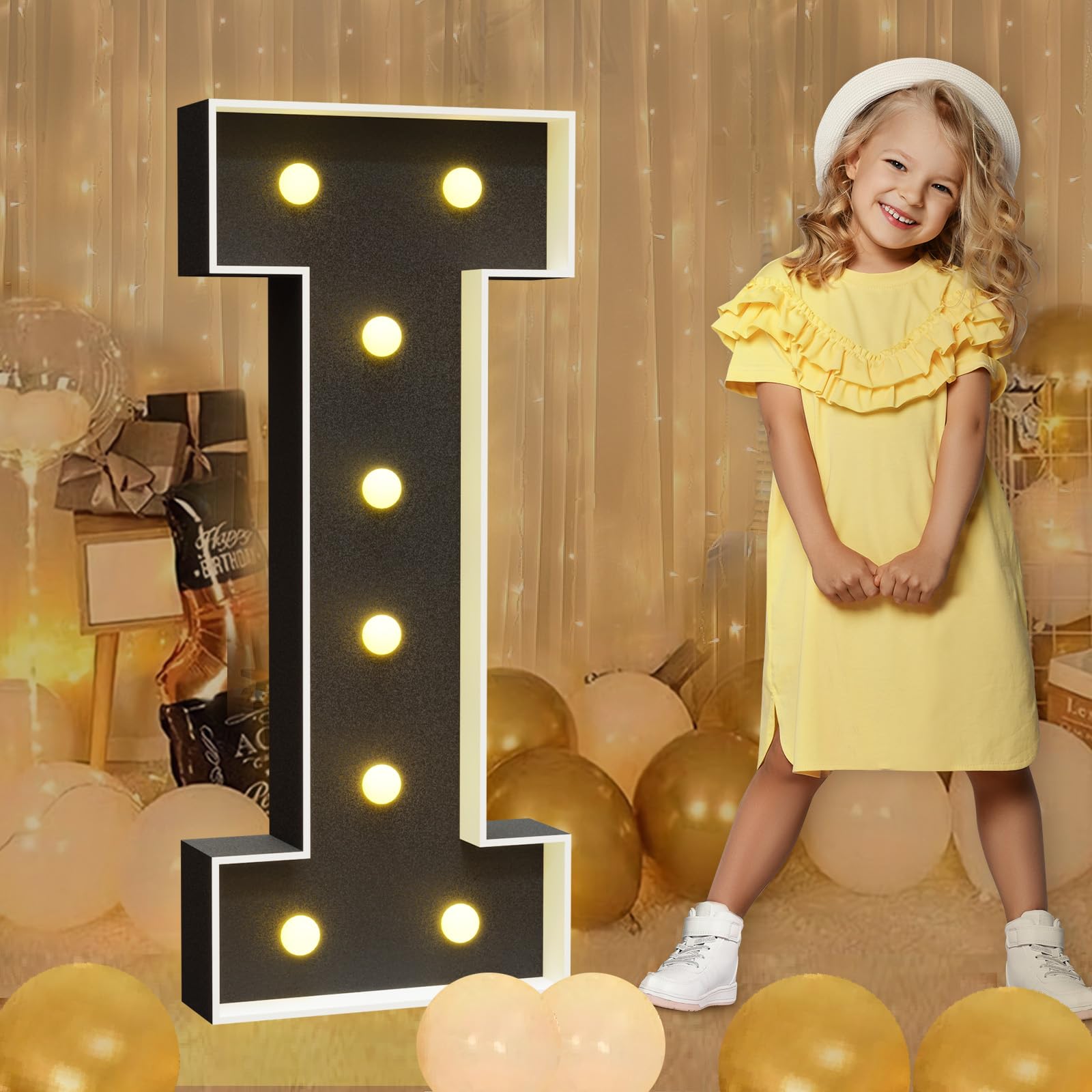 Imprsv Marquee Letters Black 3Ft: Black Party Decor - Light Up Letter I Large 3 Feet Tall - Party Decorations Letter For Birthda