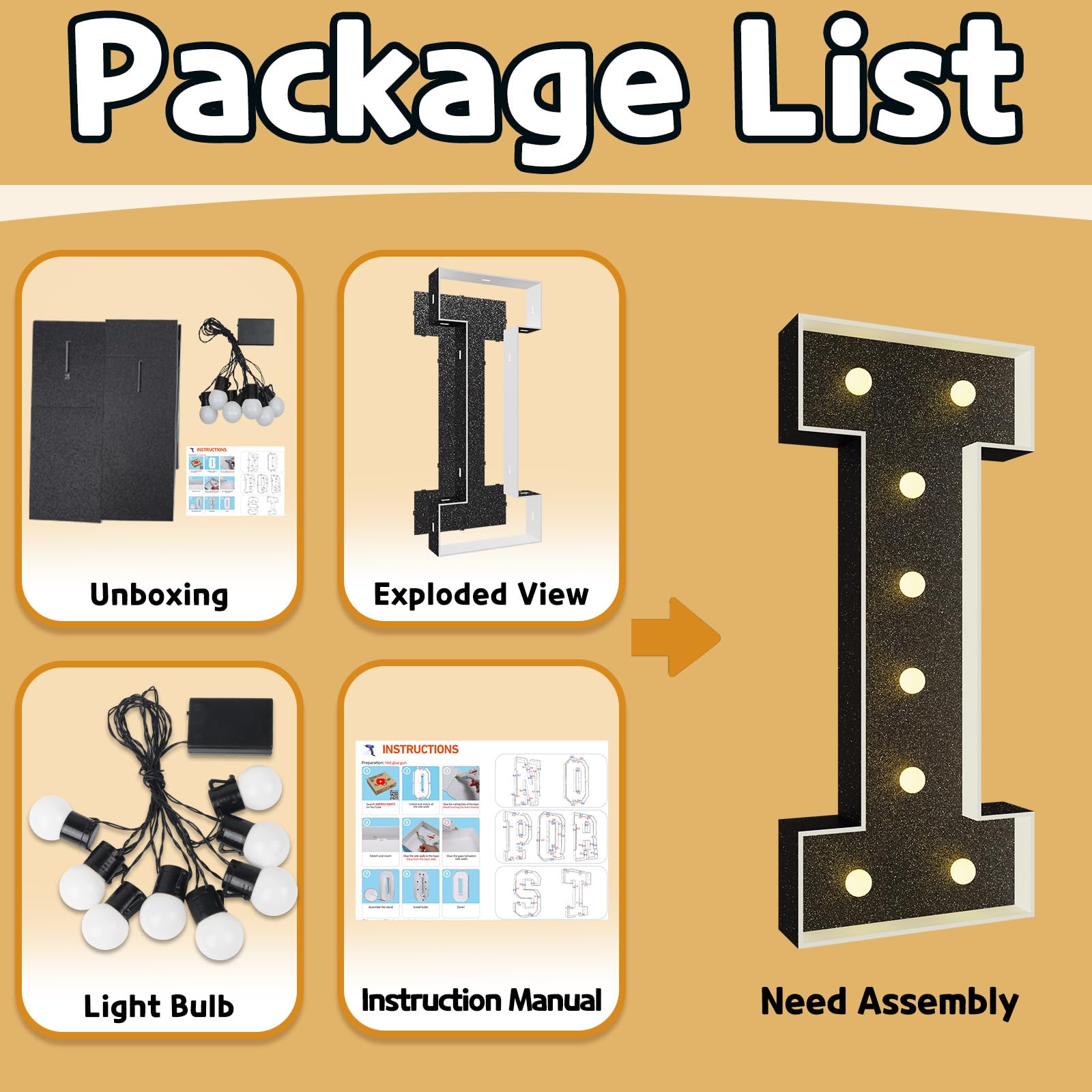 - Q: How do I assemble the marquee letters? A: Assembling the marquee letters is easy. Each package includes pre-cut foam board letter frames and a light bulb string. Simply match the slots on the board with the frame, secure with a hot glue gun, and attach the bulbs by screwing them onto the frames.