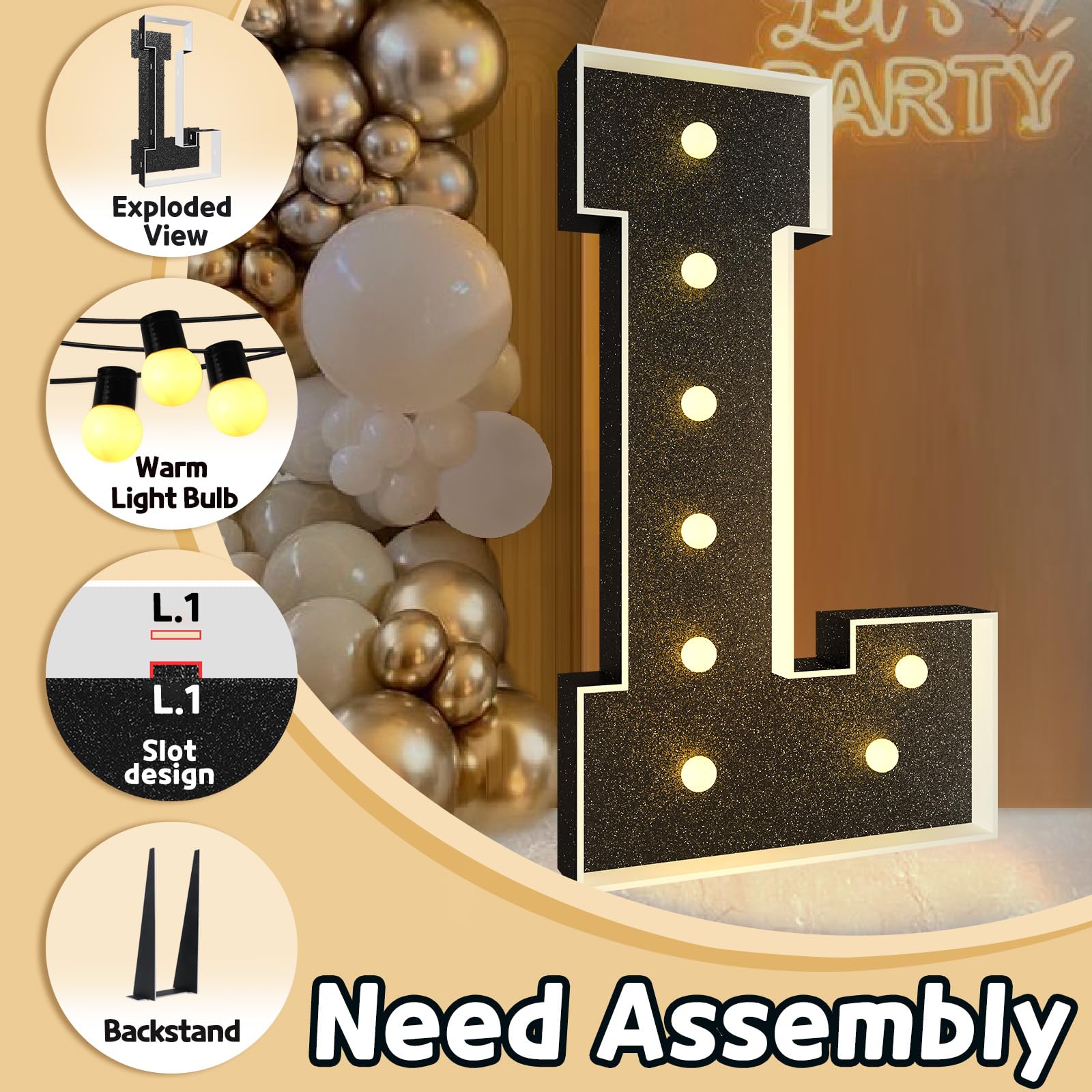 - Q: What occasions are suitable for using the black marquee letter? A: The black marquee letter L is perfect for various occasions, such as birthday parties, weddings, love proposals, and any celebration where you want to make a stylish statement.