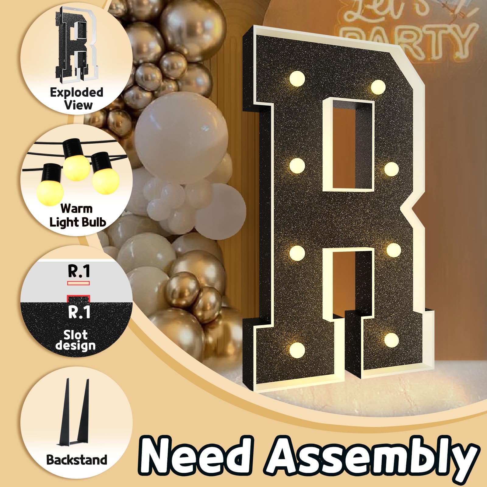 Imprsv Marquee Letters Black 3Ft: Black Party Decor - Light Up Letter R Large 3 Feet Tall - Party Decorations Letter For Marry M