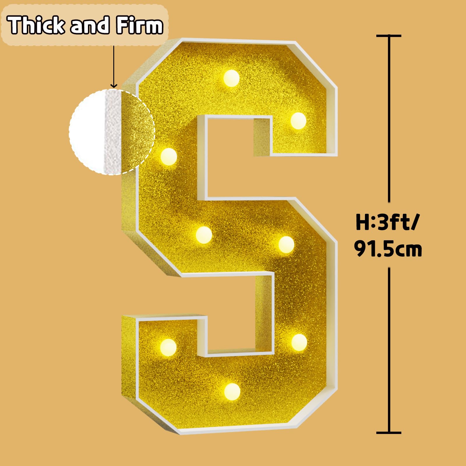 Imprsv Marquee Letters Gold 3Ft: Golden Party Decor - Light Up Letter S Large 3 Feet Tall - Party Decorations Letter For Birthda