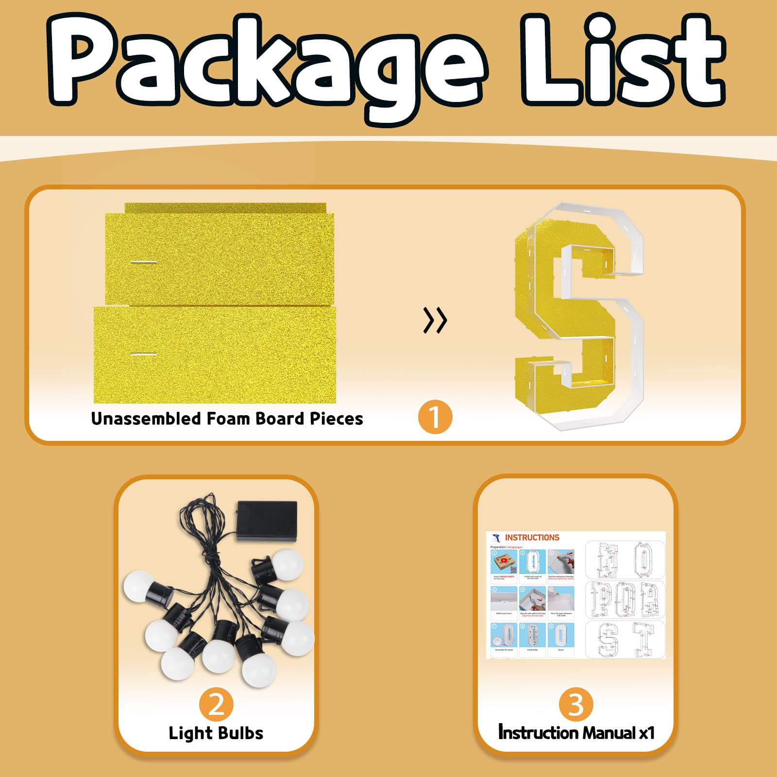 - Q: How do I assemble the marquee letters for my event? A: Assembly is simple with the included pre-cut frames and light string. Just match the slots on the board with the frames and secure them using a hot glue gun. Then, attach the bulbs by screwing them onto the frames.