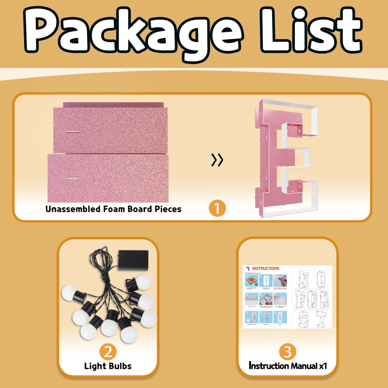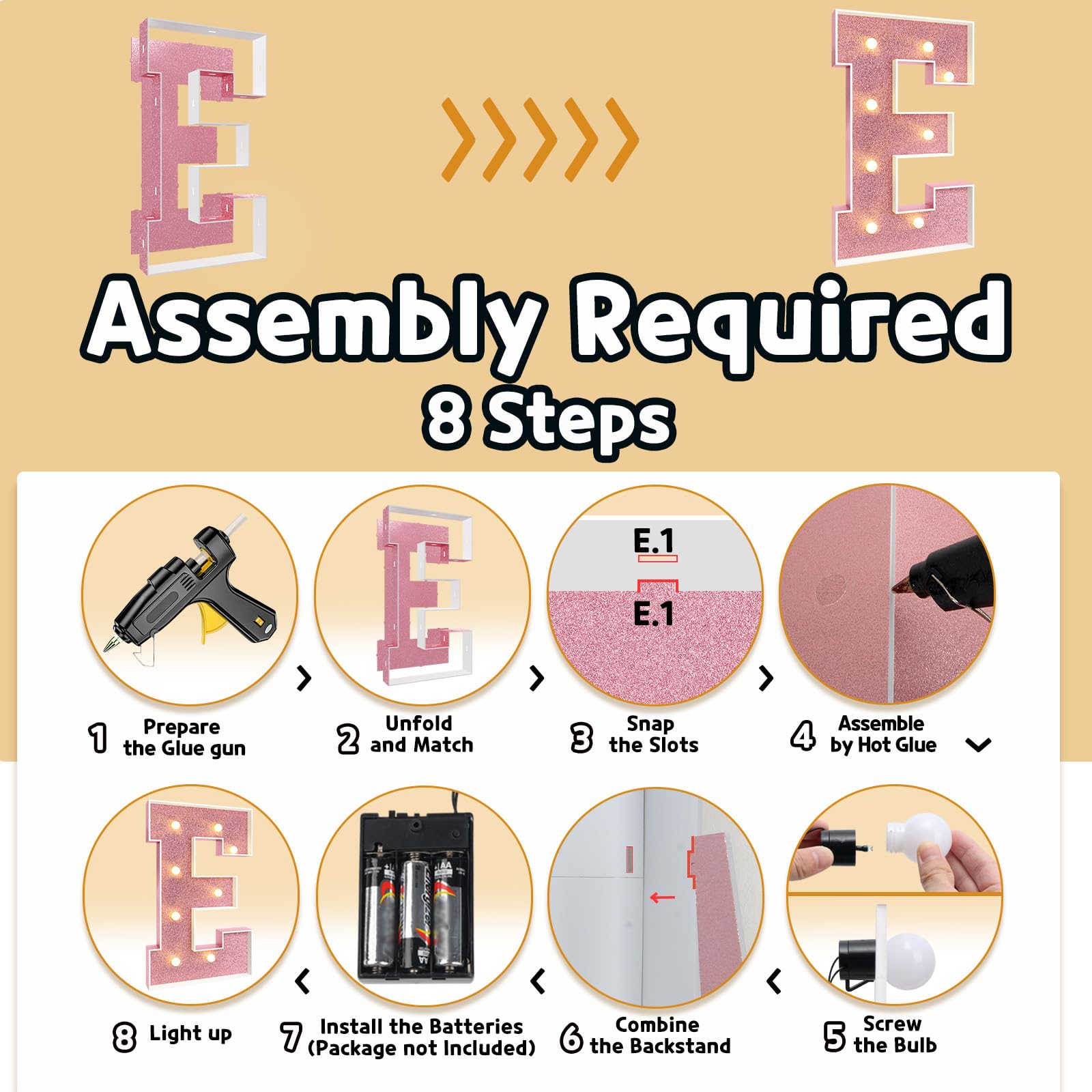 - Q: How do I assemble the marquee letters? A: The assembly is straightforward; the package includes pre-cut frames and light strings. Simply match the slots on the board with the frame, secure them with a hot glue gun, and attach the bulbs by screwing them onto the frames.