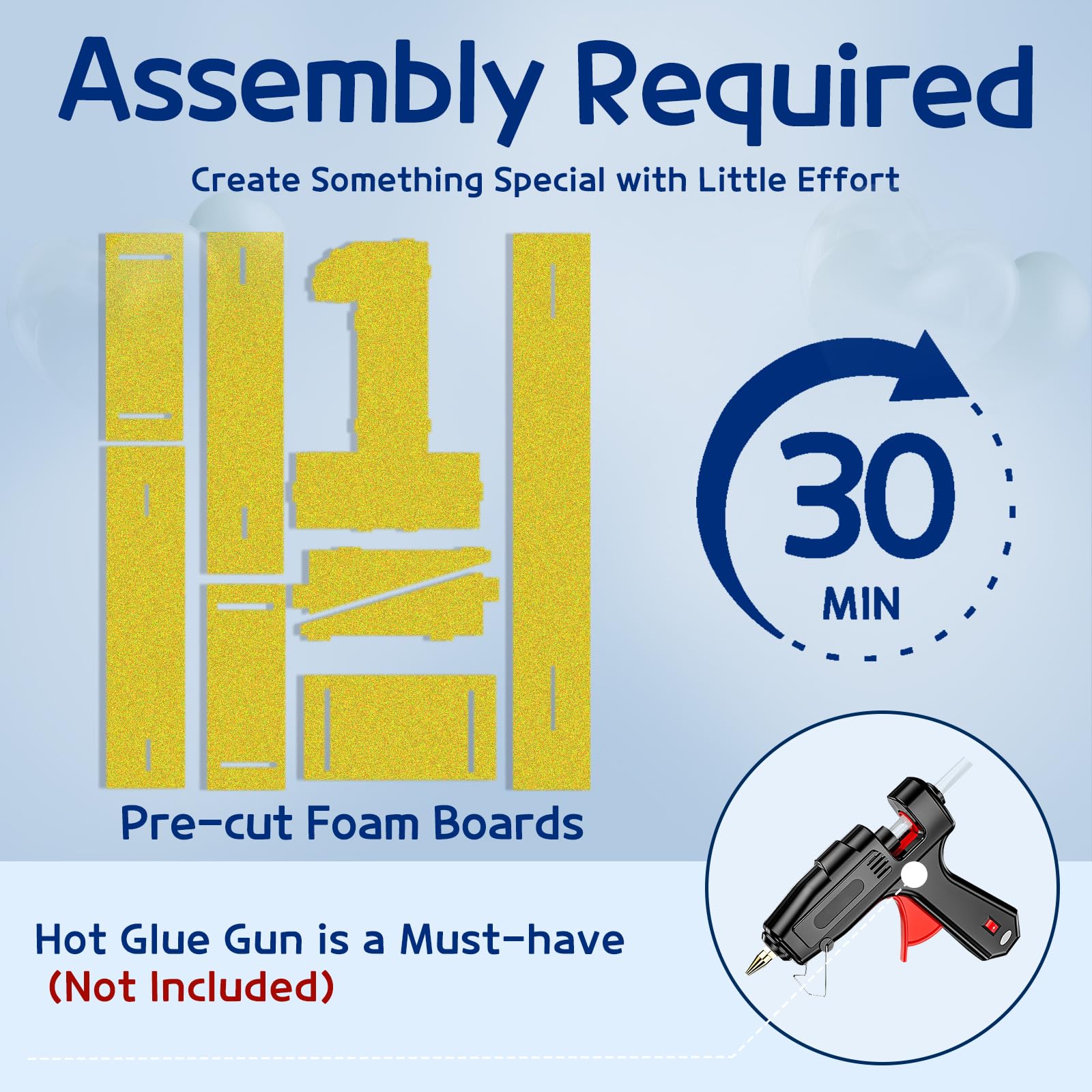 - Q: Is assembly required for the marquee number? A: Yes, assembly is required for the marquee number. It comes as pre-cut foam boards, and you'll need a hot glue gun for assembly, which is not included in the package.