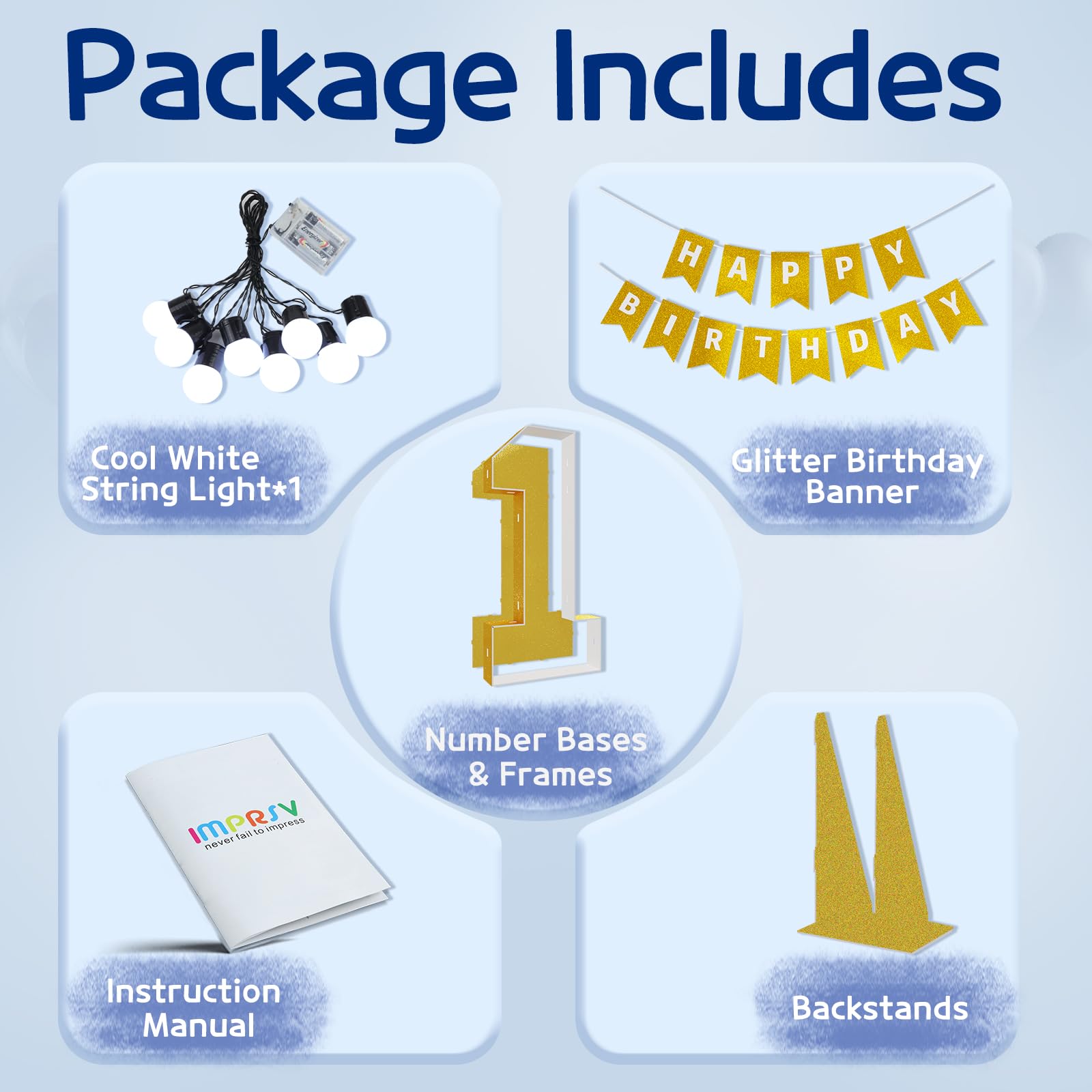 Imprsv Marquee Numbers Gold 1St-Birthday Decorations: Large 3Ft Light Up Number First Birthday Decoration For Boy Girl One Year