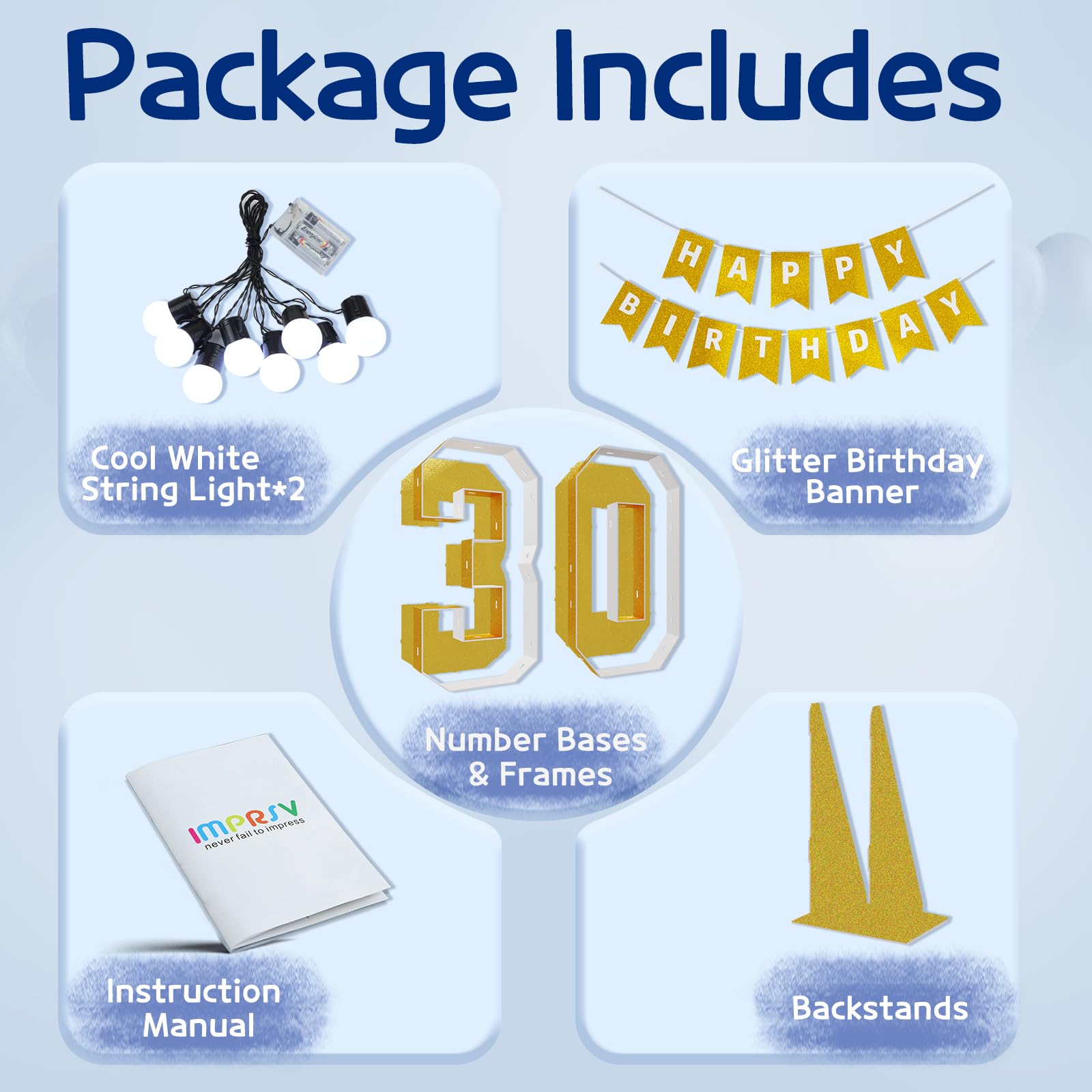 Imprsv Marquee Numbers Gold 30Th-Birthday Decorations: Large 3Ft Light Up Number 30 Birthday Decoration For Women Men Thirty Yea