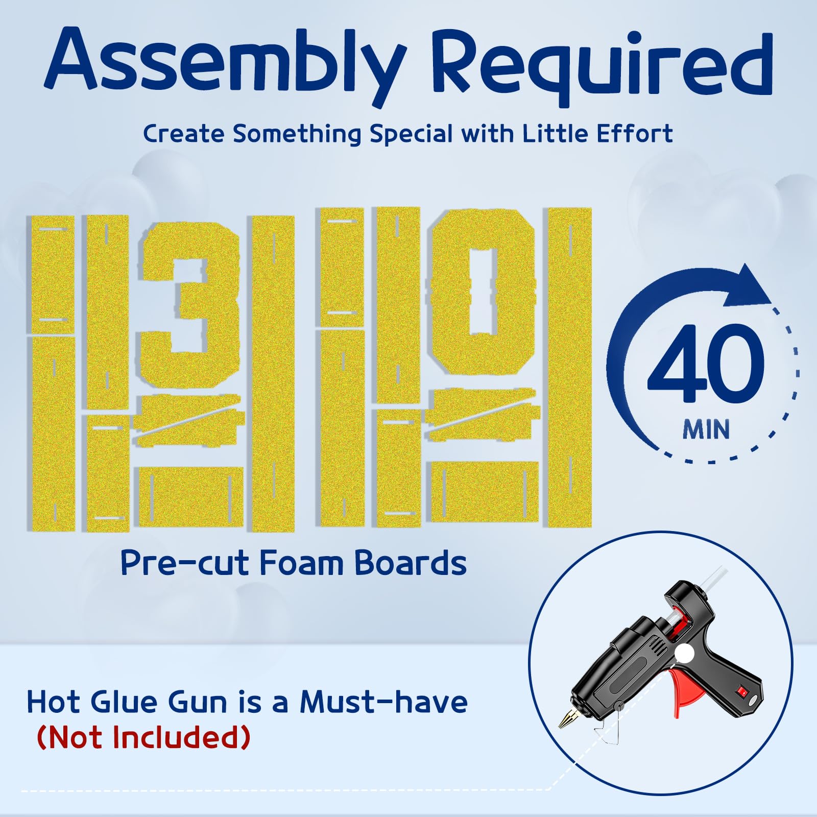 - Q: Do I need any additional tools to assemble the marquee numbers? A: Yes, a hot glue gun is required for assembly. Please note that the package does not include a hot glue gun, so make sure to have one on hand.