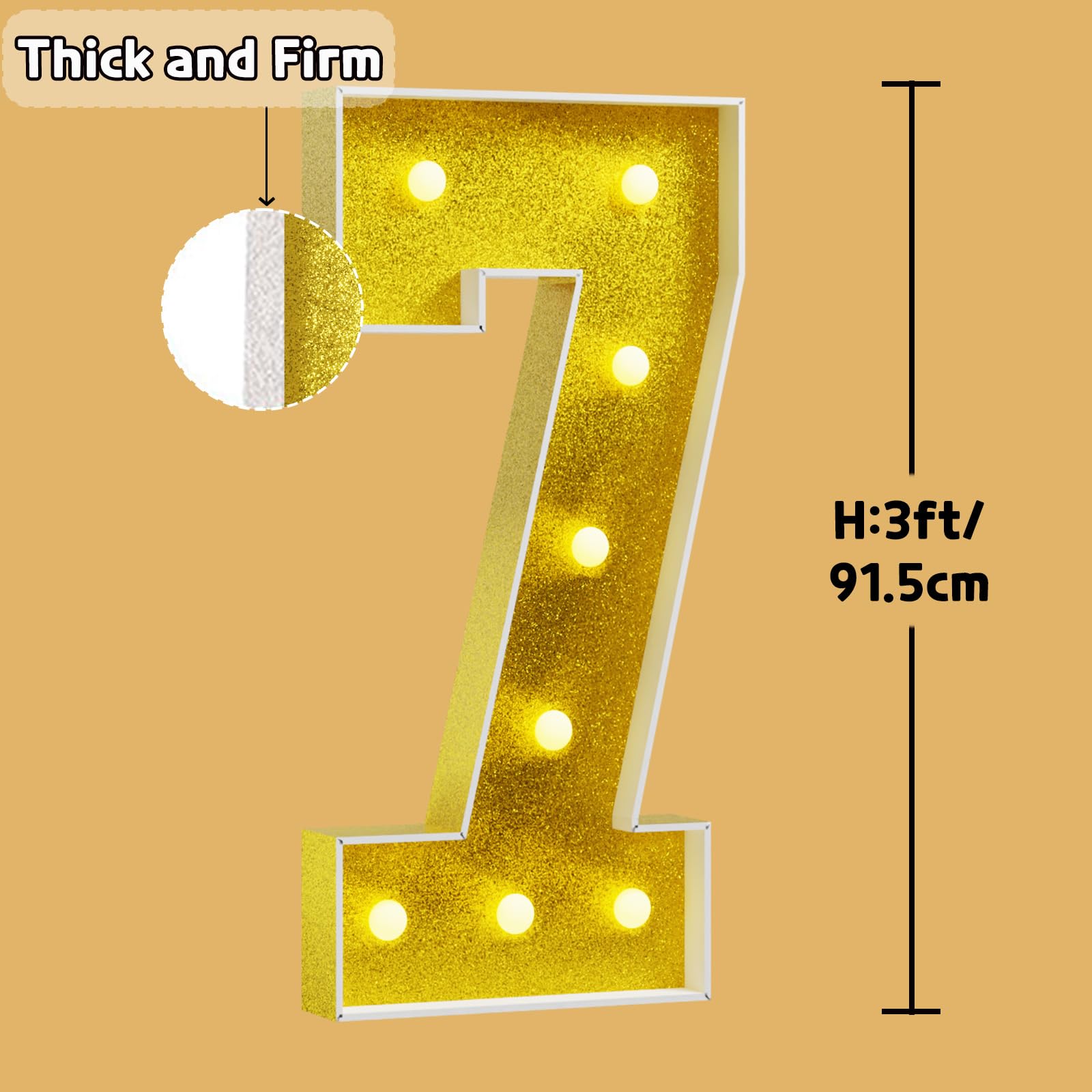Imprsv Marquee Numbers Gold 3Ft: Golden Party Decor - Light Up Number 7 Large 3 Feet Tall - Birthday Decorations For Him Her 7Th