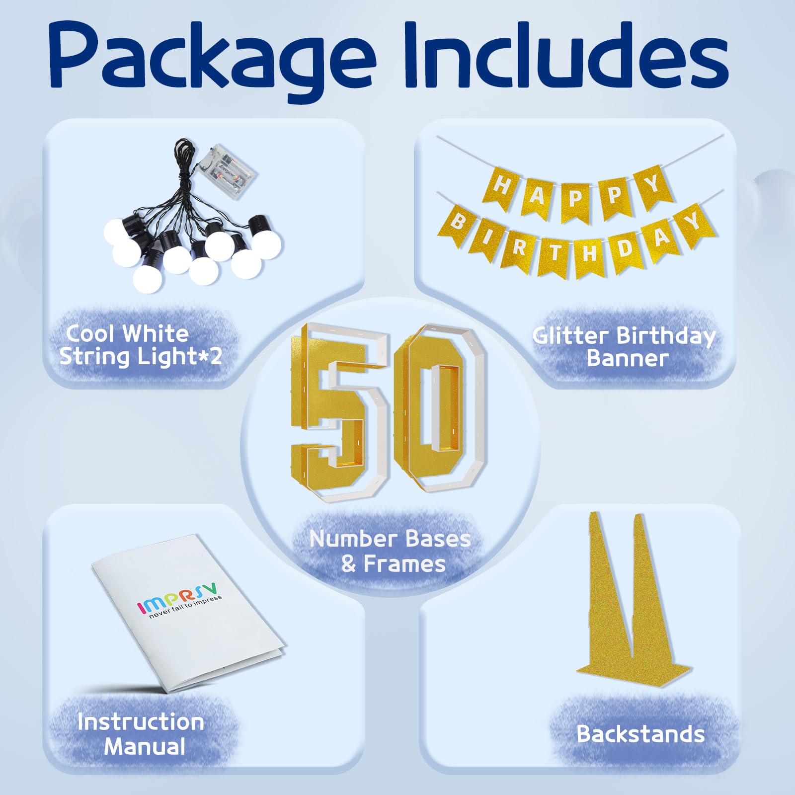 - Q: Can these numbers be used for occasions other than a 50th birthday? A: Yes, the imprsv Marquee Numbers can be used for various celebrations, including anniversaries and milestone parties. They are versatile decorations suitable for both men and women celebrating their 50th year or any special event.