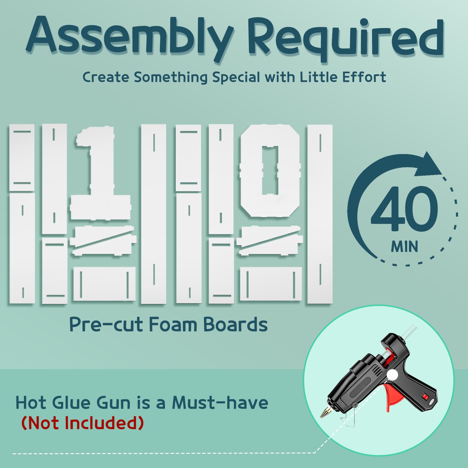 - Q: Do I need any additional tools for assembly? A: Yes, you will need a hot glue gun to assemble the marquee numbers. Please note that the hot glue gun is not included in the package.