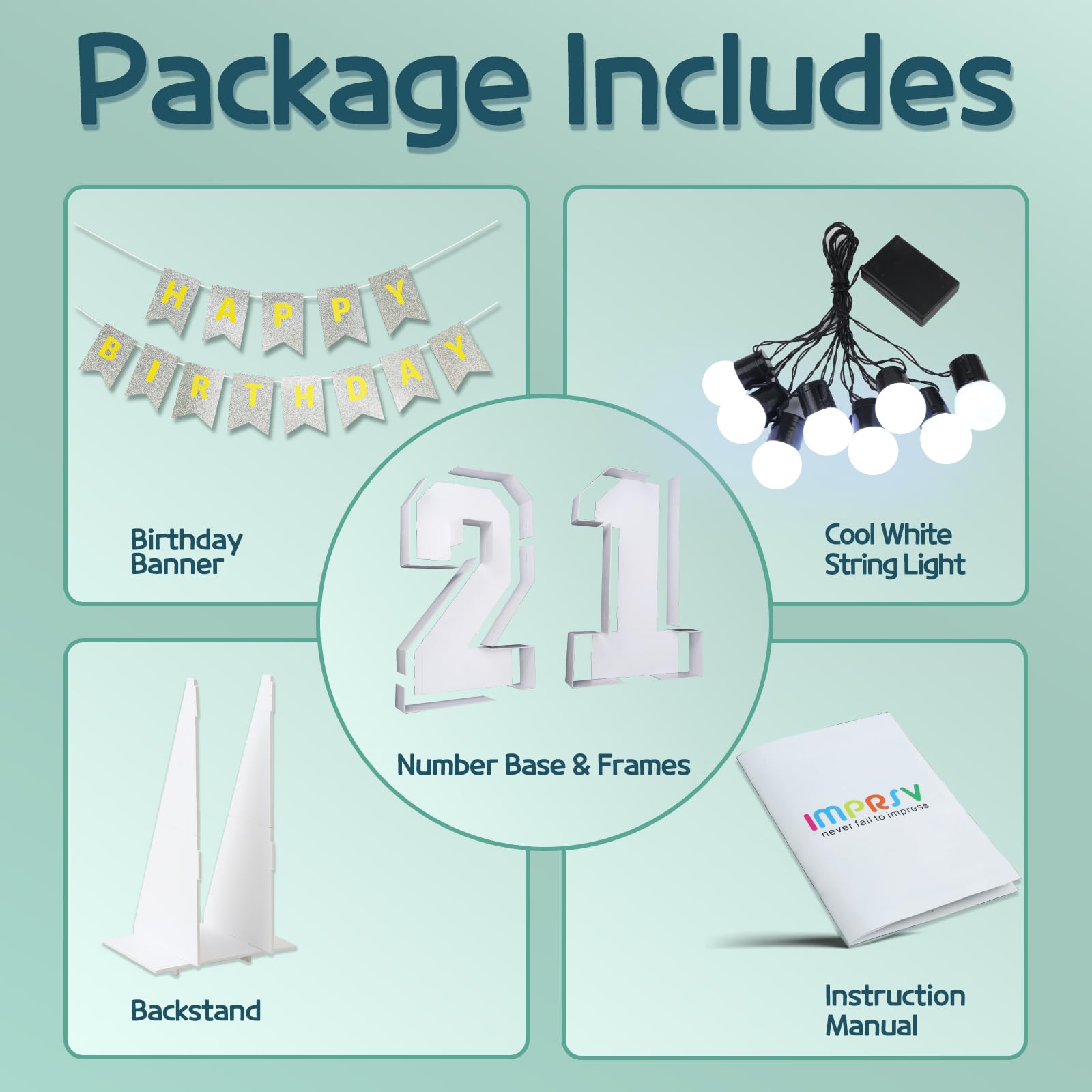 Imprsv Marquee Numbers Large 21St-Birthday Decorations: 3Ft Light Up Number 21 Birthday Decoration For Women Men Twenty One Year