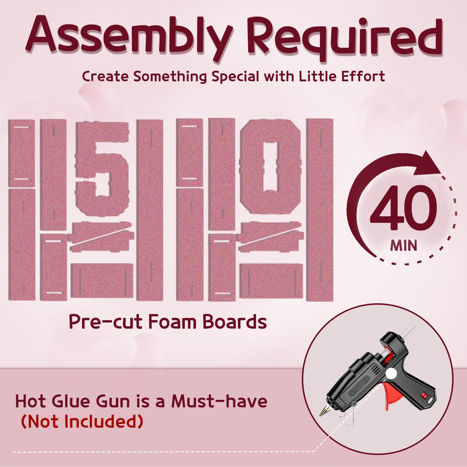 - Q: How do I assemble the marquee numbers for my party? A: Assembly is user-friendly and requires a hot glue gun, which is not included in the package. Detailed instructions and a video tutorial are provided to guide you through the assembly process easily.