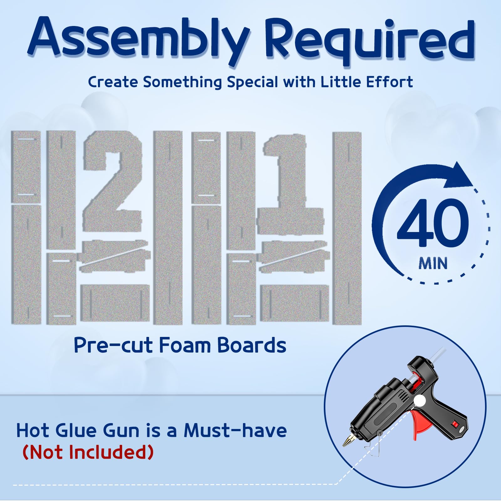 - Q: Do the marquee numbers require any additional tools for setup? A: Yes, a hot glue gun is required for assembly, but please note that the package does not include one. Make sure to have one on hand to complete your setup.