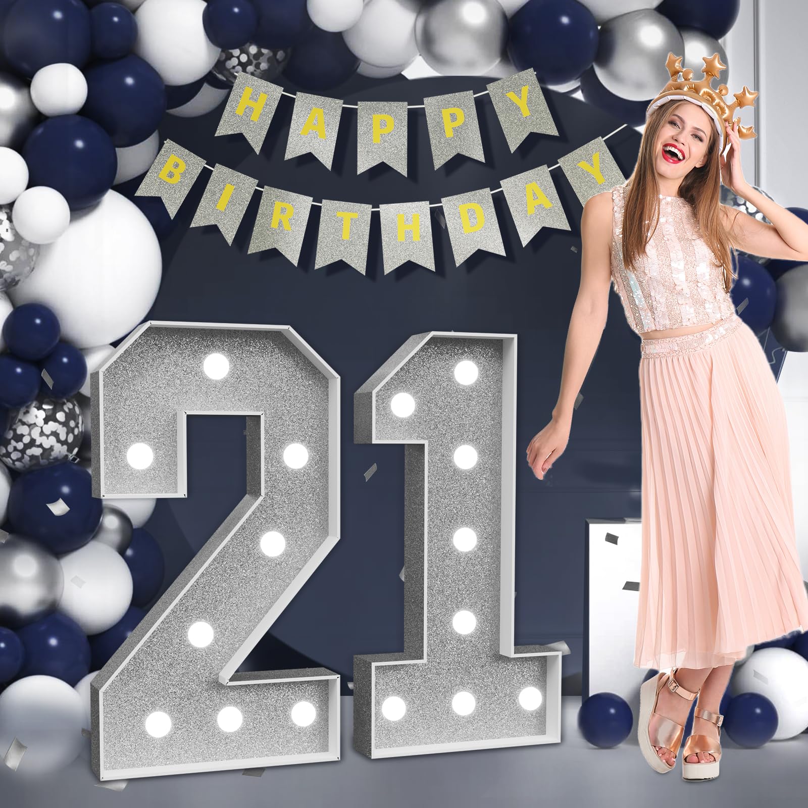 Imprsv Marquee Numbers Silver 21St-Birthday Decorations: Large 3Ft Light Up Number Grey 21 Birthday Decoration For Women Men Twe