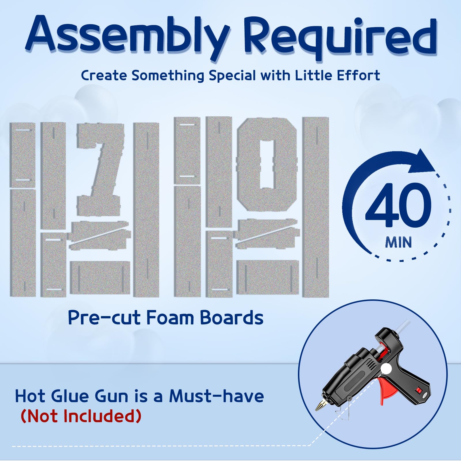 - Q: How do I assemble the marquee numbers for my event? A: Assembly requires a hot glue gun, which is not included in the package. The large marquee numbers come as pre-cut foam boards, and a detailed instruction manual along with a video tutorial are provided to guide you through the assembly process.