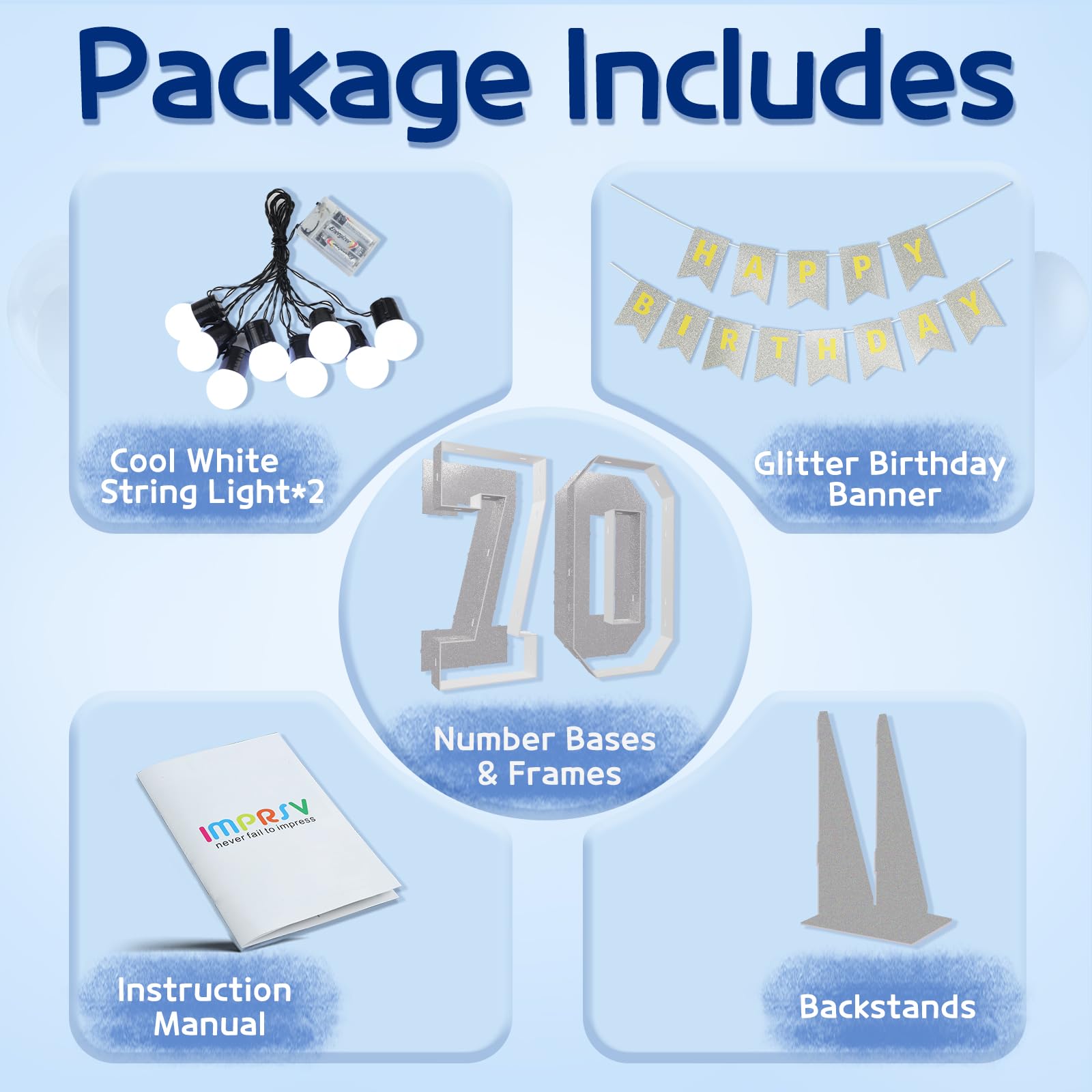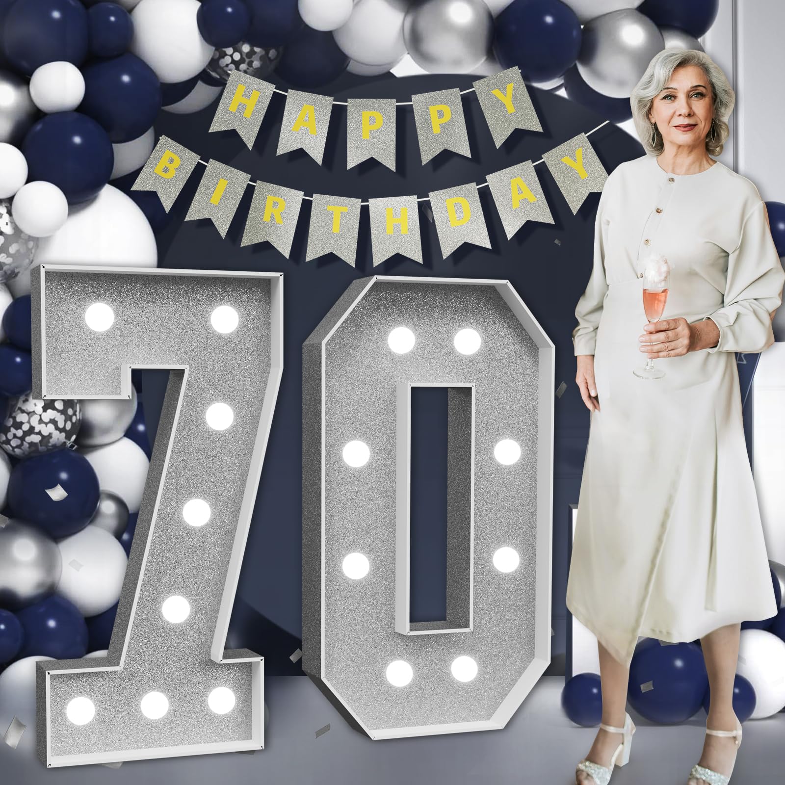 Imprsv Marquee Numbers Silver 70Th-Birthday Decorations: Large 3Ft Light Up Number Grey 70 Birthday Decoration For Women Men Ann