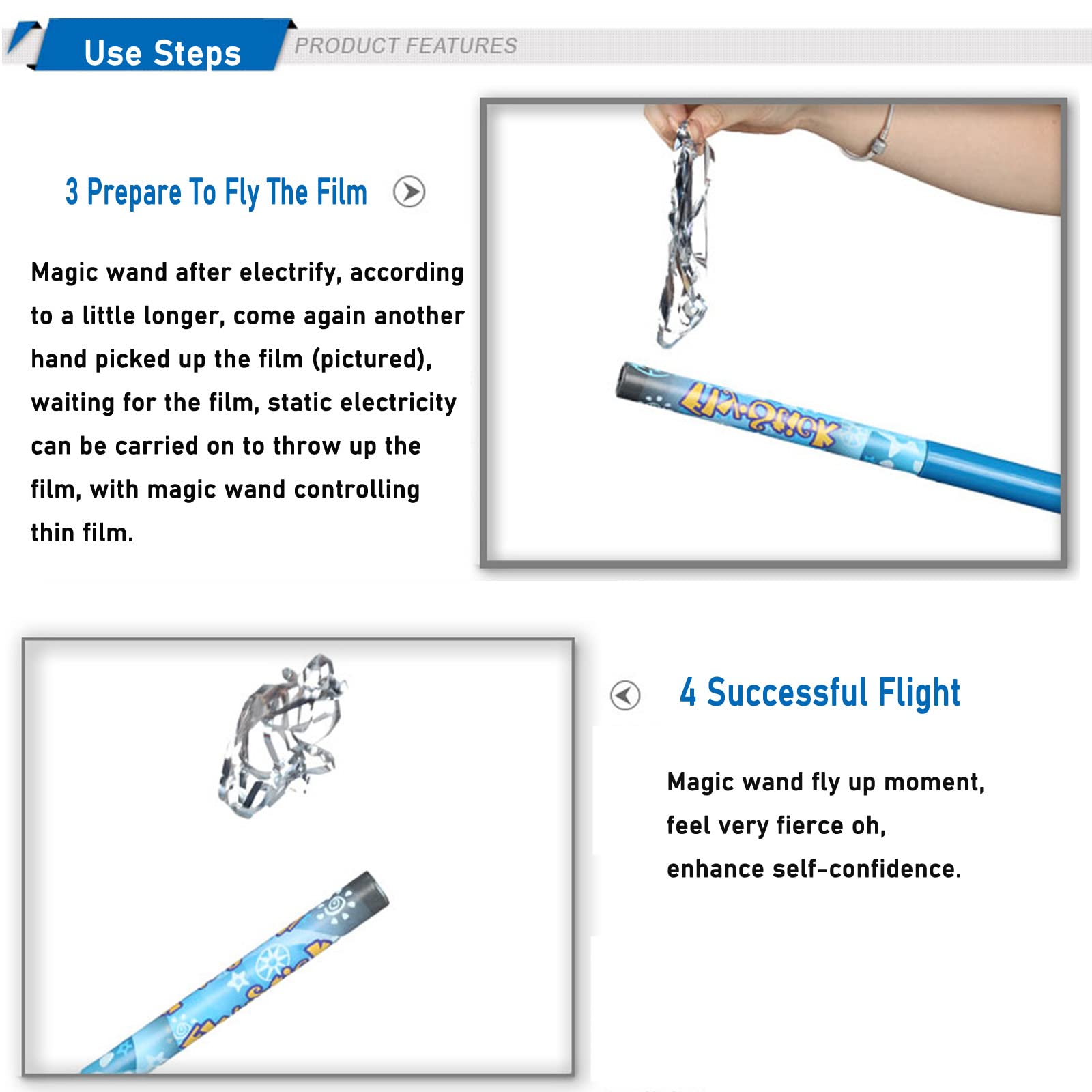 All components are working and flying up 10pc mylar foils flyer. You will be the best teacher ! It separates electrons and protons, causing a positive static charge that gets accumulated on the cardboard control tube. Children educational science kit toys Fun Fly Sitck electric static wand magic levitation wand BO flying stick with 10pc flying toys unique design christmas gift toys for boys & girl. Packing Includes: 1* FunFlyStick Magic Levitation Wand, 1* Paper Tube, 1* Instruction Manual, 2* Magic Wand Manual, 10* Flying toys: (3* Medium Sphere Flying Toys, 2* Large Sphere Flying Toys, 1* Butterfly Flying Toy, 2* Hourglass Flying Toys, 1* Medium Ring Flying Toy, 1* Large Ring Flying Toy)