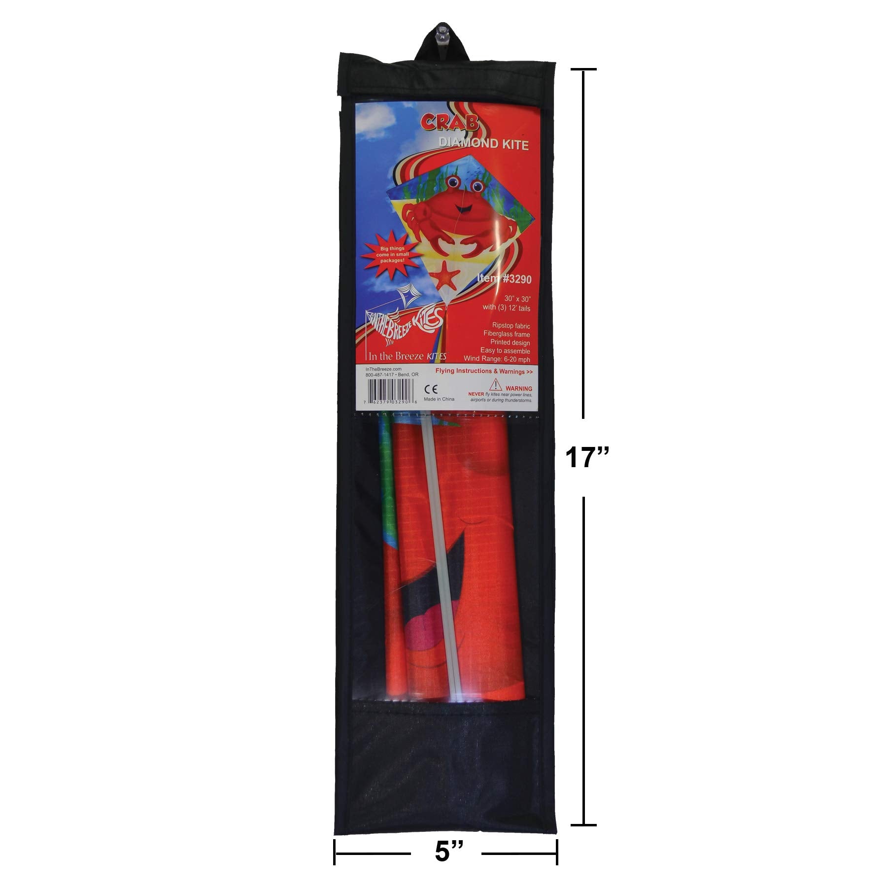 - Q: What is the size of the In the Breeze 3290 Crab Diamond Kite? A: The In the Breeze 3290 Crab Diamond Kite measures 30 inches wide by 30 inches high, making it a perfect size for both beginners and experienced flyers.