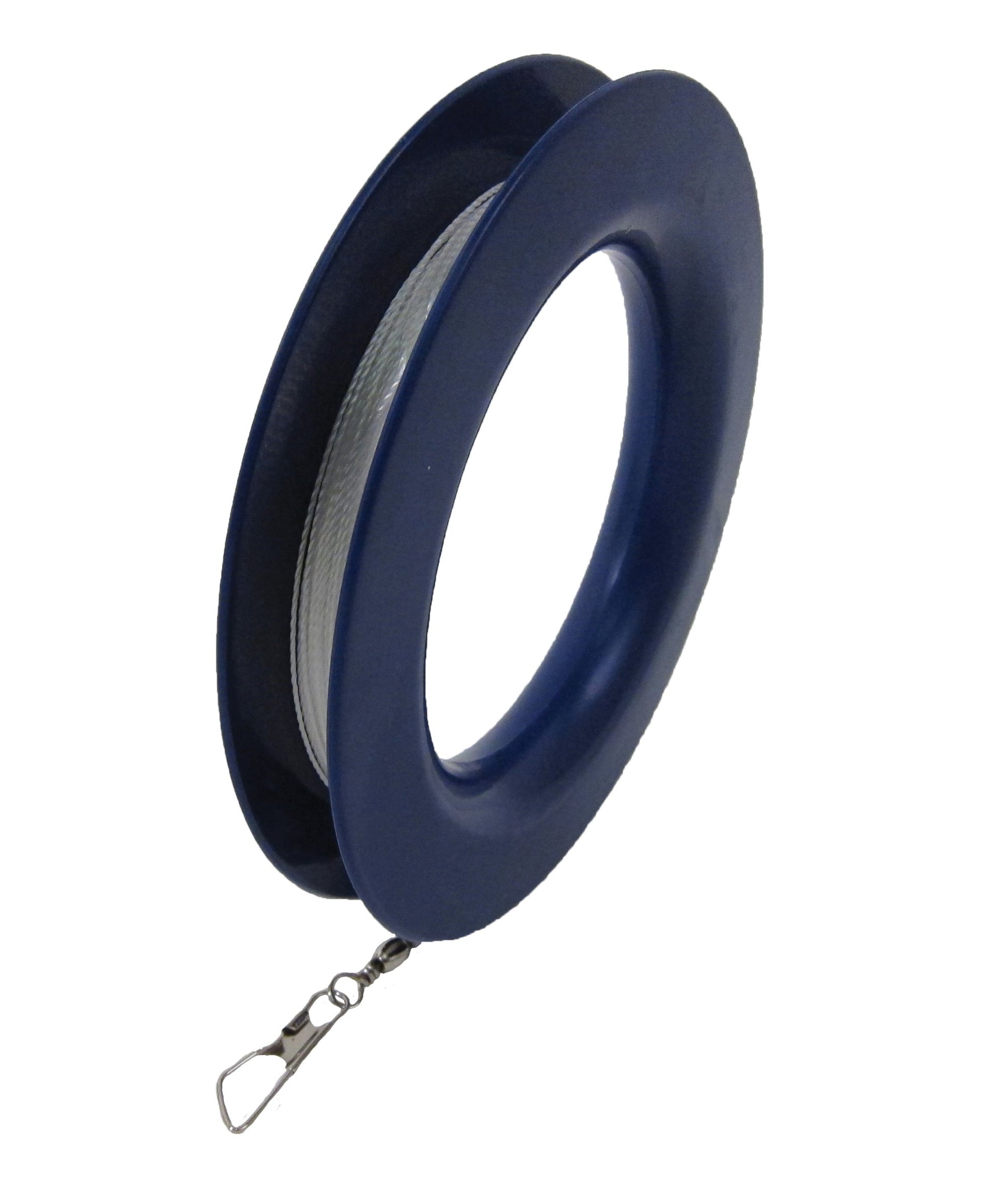 This 30 LB x 300' twisted polyester kite line comes on a durable plastic hoop winder with an attached snap swivel.