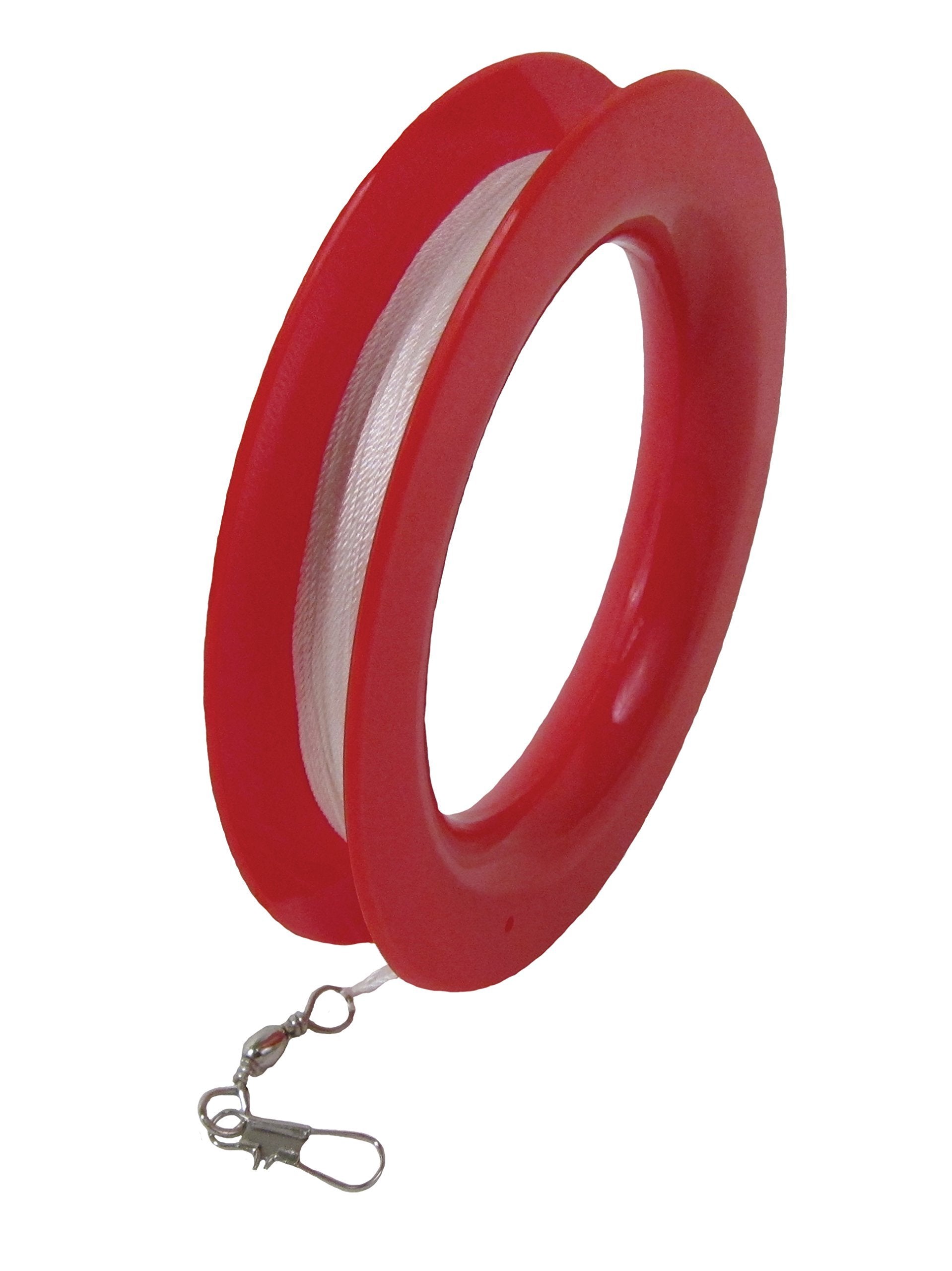 This 50 LB x 300' twisted polyester kite line comes on a durable plastic hoop winder with an attached snap swivel.