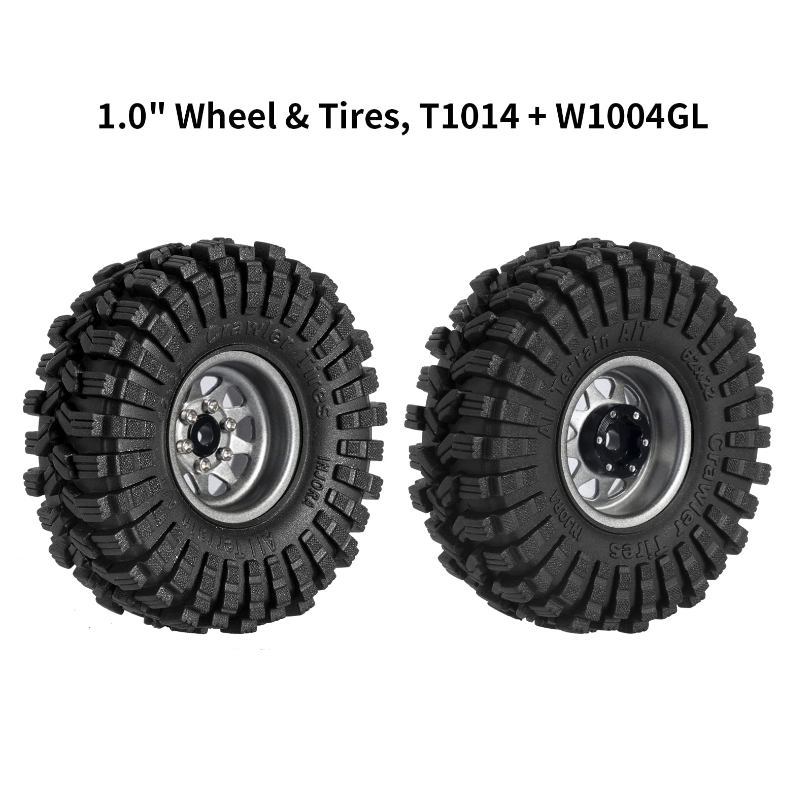 Rim Specifications: Part Number: W1004 Material: Steel Offset: -3.78mm (-0.15in) Outer Diameter: 27mm (1.06in) Width: 14mm (0.55in) Wheel Hub: 7mm (0.28in) Each Weight: 15g/pcs (0.53oz) Tire Specifications: Part Number: T1014 Compound: INJORA S5 (Super Soft & Sticky) Material: Rubber Outer Diameter: 62mm (2.44in) Width: 22mm (0.87in) Each Tire Weight: 15g (0.53oz) Package List: 4 * RC Car 1.0'' Rims 4 * RC Car 1.0'' Tires