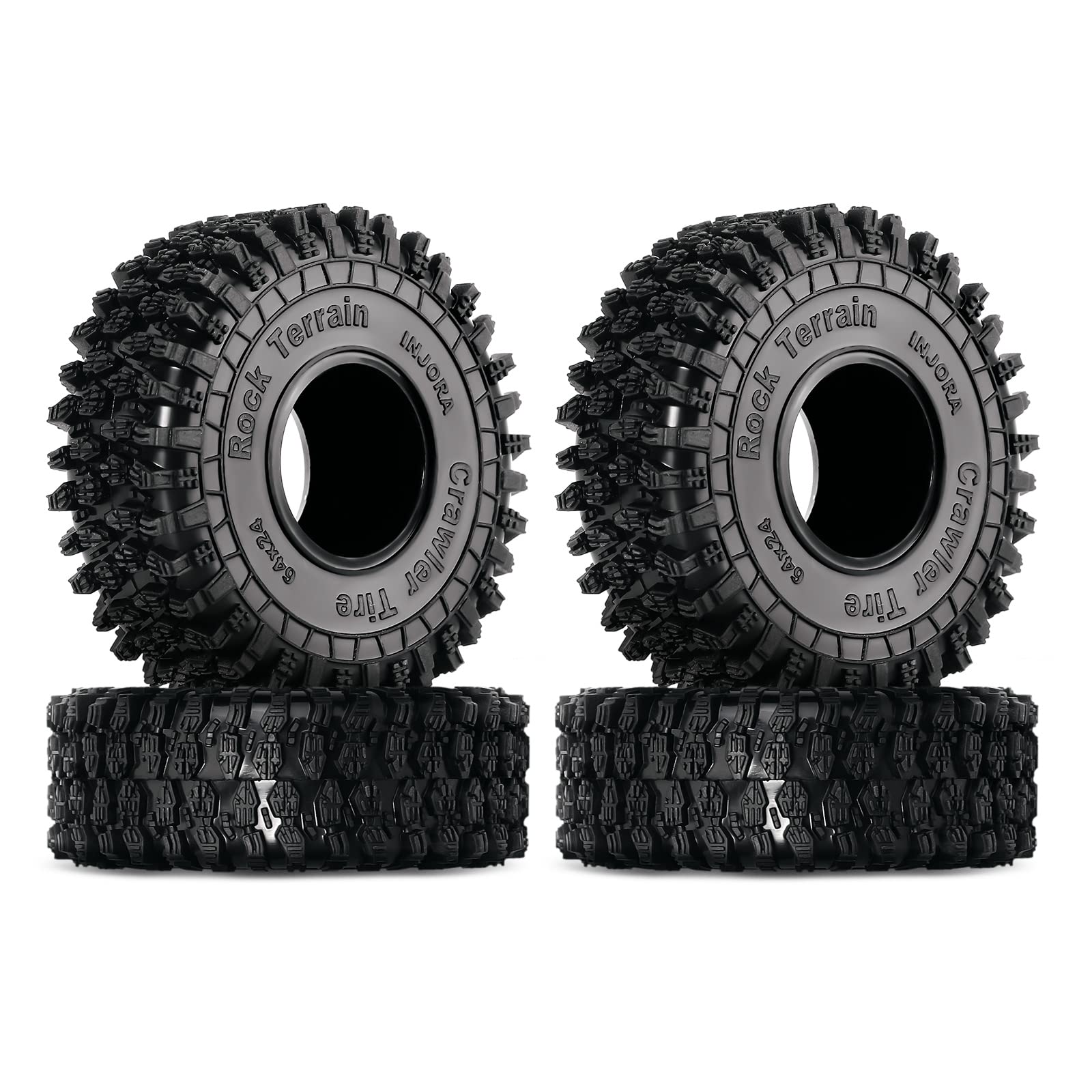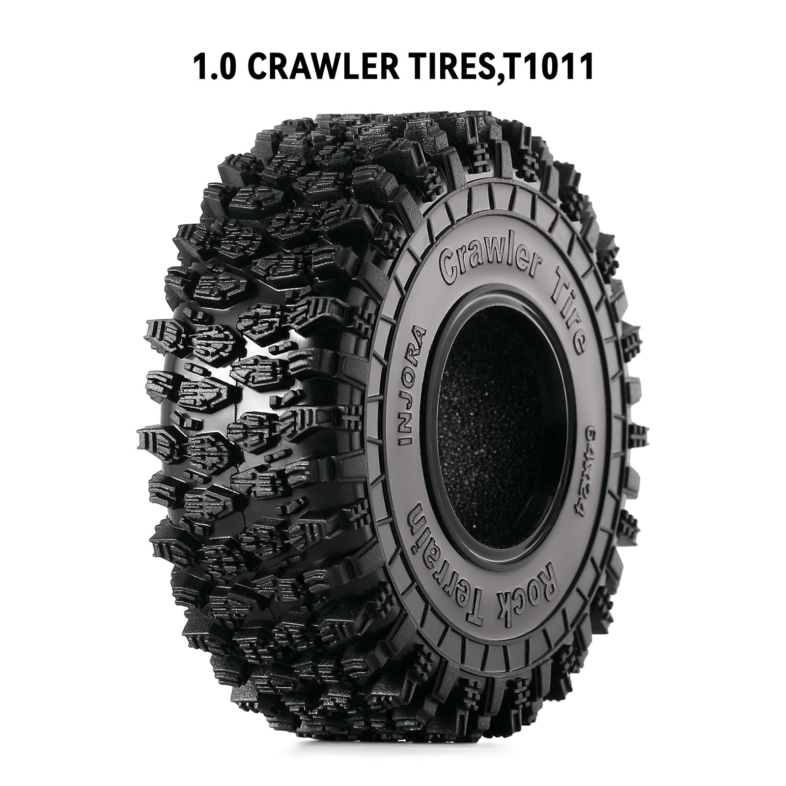 - Q: Can I use these tires for on-road driving? A: While the INJORA 1.0 Tires are primarily designed for off-road crawling with exceptional grip on uneven surfaces, they may not perform optimally on paved roads due to their soft compound and design tailored for rough terrains.