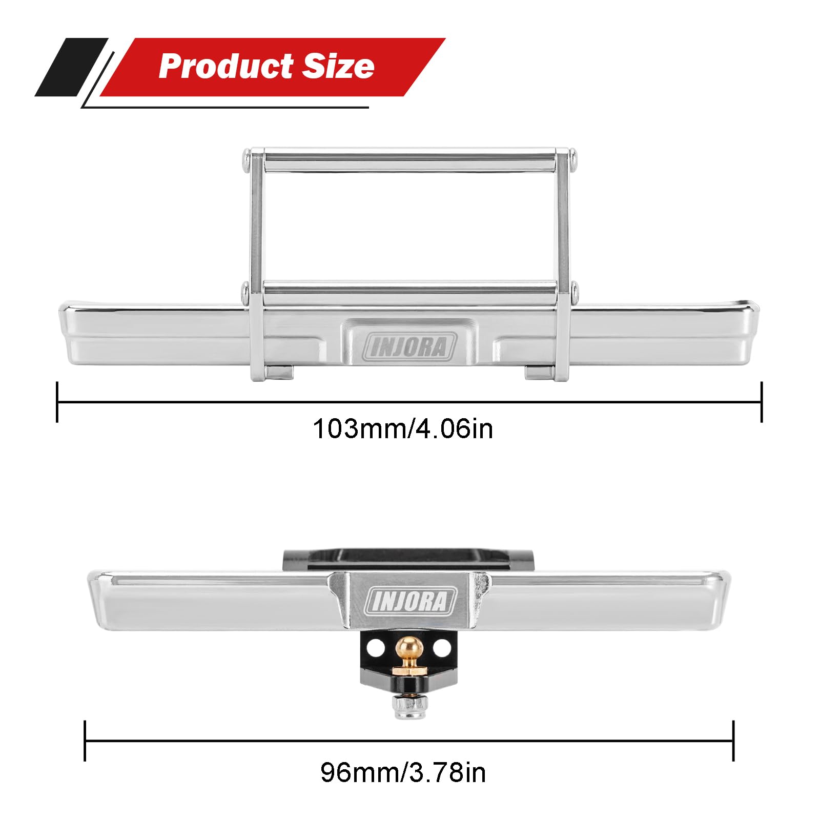 • Q: What material is the INJORA bumper made from? A: The INJORA bumper is made from high-quality CNC aluminum, which provides sturdiness and durability, making it ideal for protecting your RC vehicle.