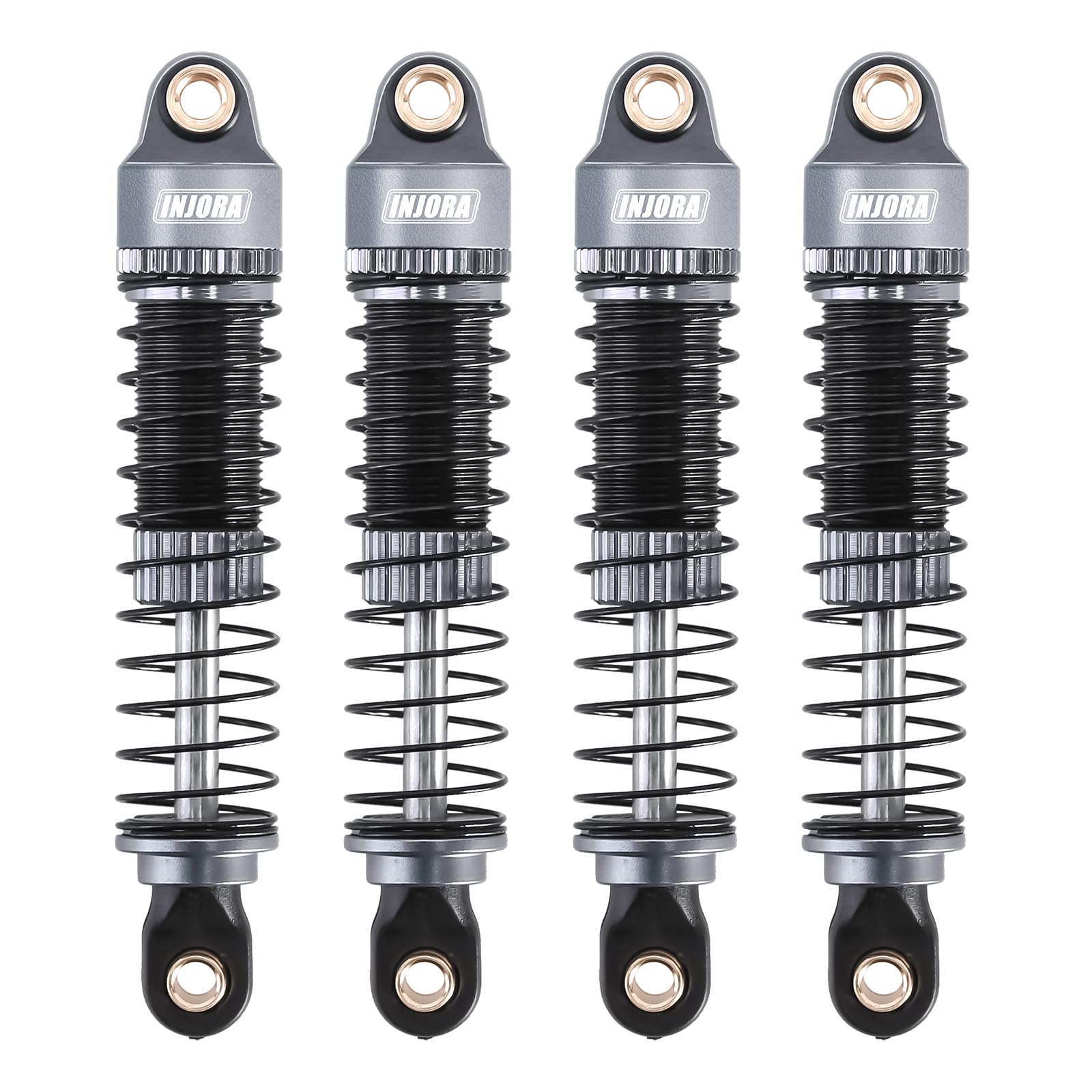 - Q: Can I adjust the spring rates on these shocks? A: Yes, the INJORA shocks come with two spring rates (0.45mm and 0.5mm) that are 43mm long, allowing you to adjust them according to your chassis requirements for optimal performance.
