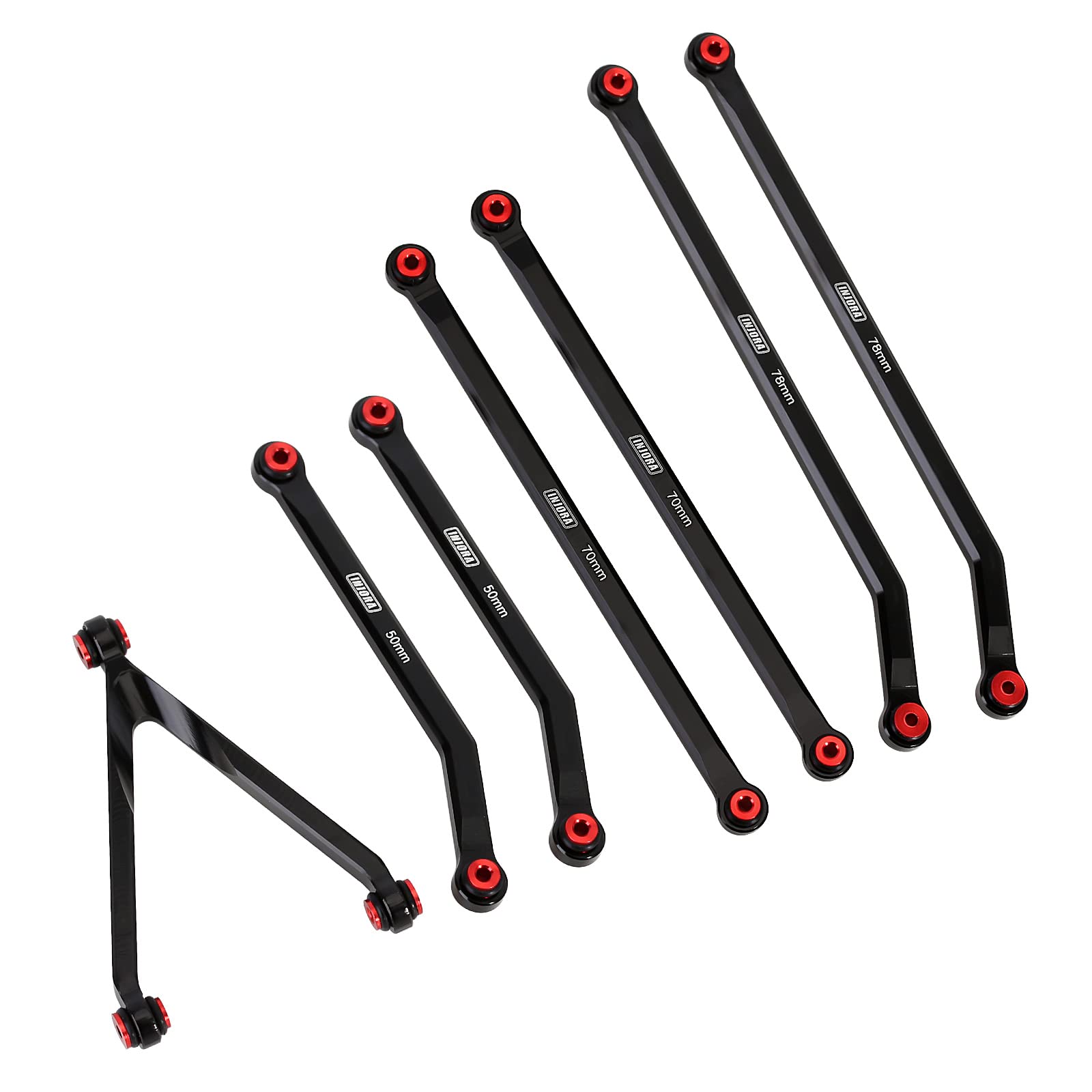 Features: CNC Black Anodized aluminum link for ultimate durability Etched with the INJORA logo, replace the original plastic links The perfect Scx24upgrade part, improves performance for RC car The links eliminates axle wrap and unwanted axle steer, and it has higher clearance in climbing Note: Compatibilities with SCX24 Gladiator. Not compatibilities with C-10,JLU,B-17 Betty, Deadbolt Specifications: Material: Aluminum Alloy Color: Black Quantity: 1Set Package List: 1 * SCX24 High Clearance Links