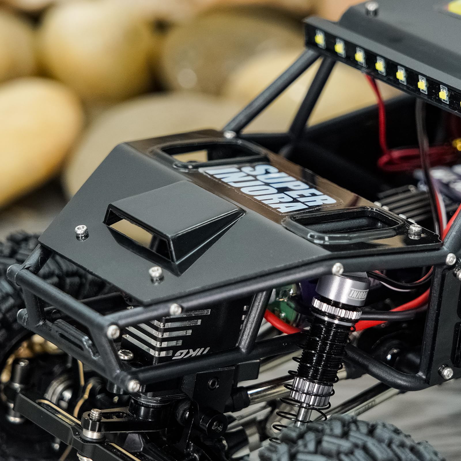 • Q: Can I use the INJORA Rock Tarantula Body Shell at night? A: Yes, the body shell comes equipped with a roof LED light, allowing you to enjoy your RC car even in low light or nighttime conditions.