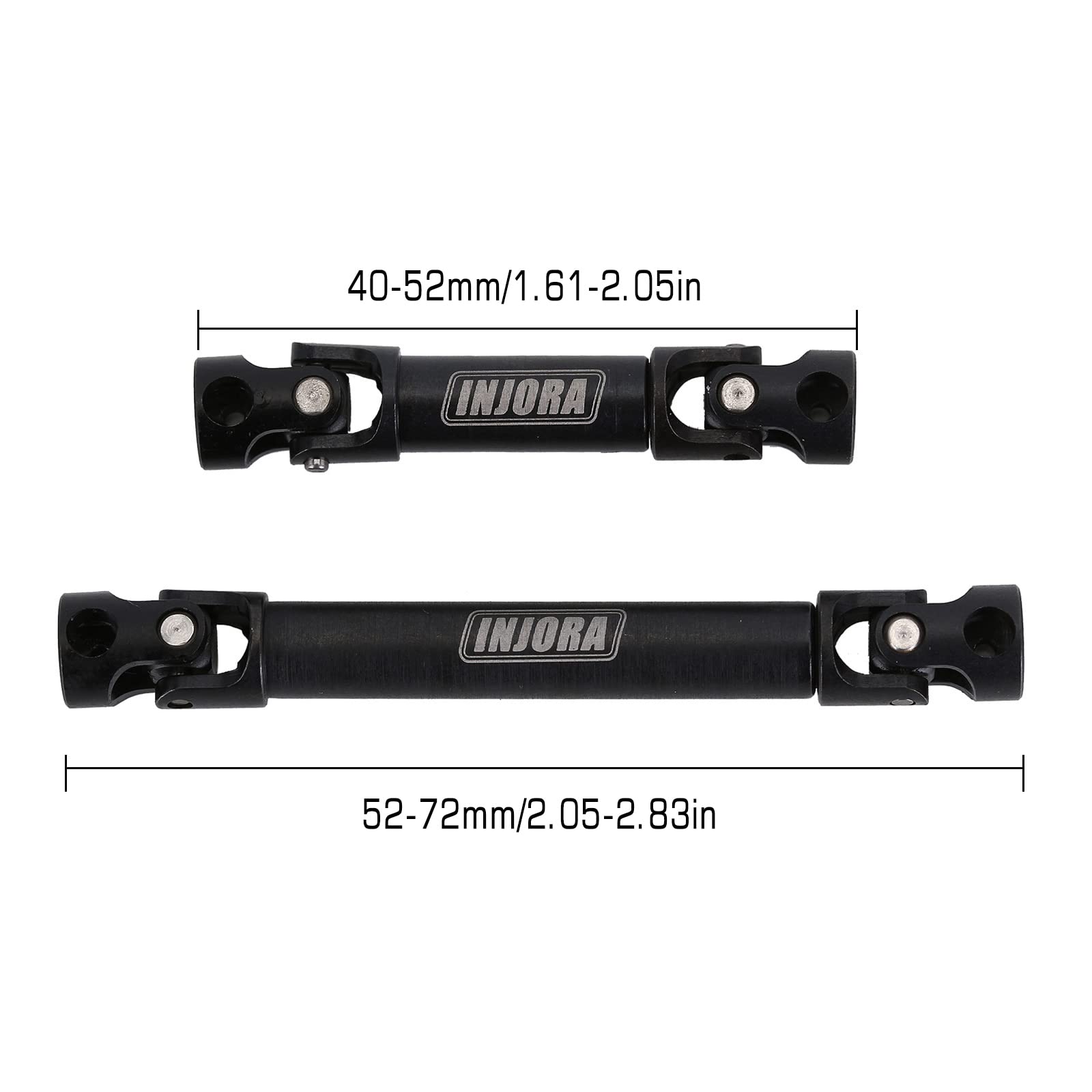 - Q: What are the dimensions and weight of the drive shafts? A: The INJORA Steel Drive Shaft comes in two sizes: overall lengths of 41-52mm and 54-72mm. Each drive shaft weighs 17g (0.60oz), making it a lightweight upgrade for improved handling.