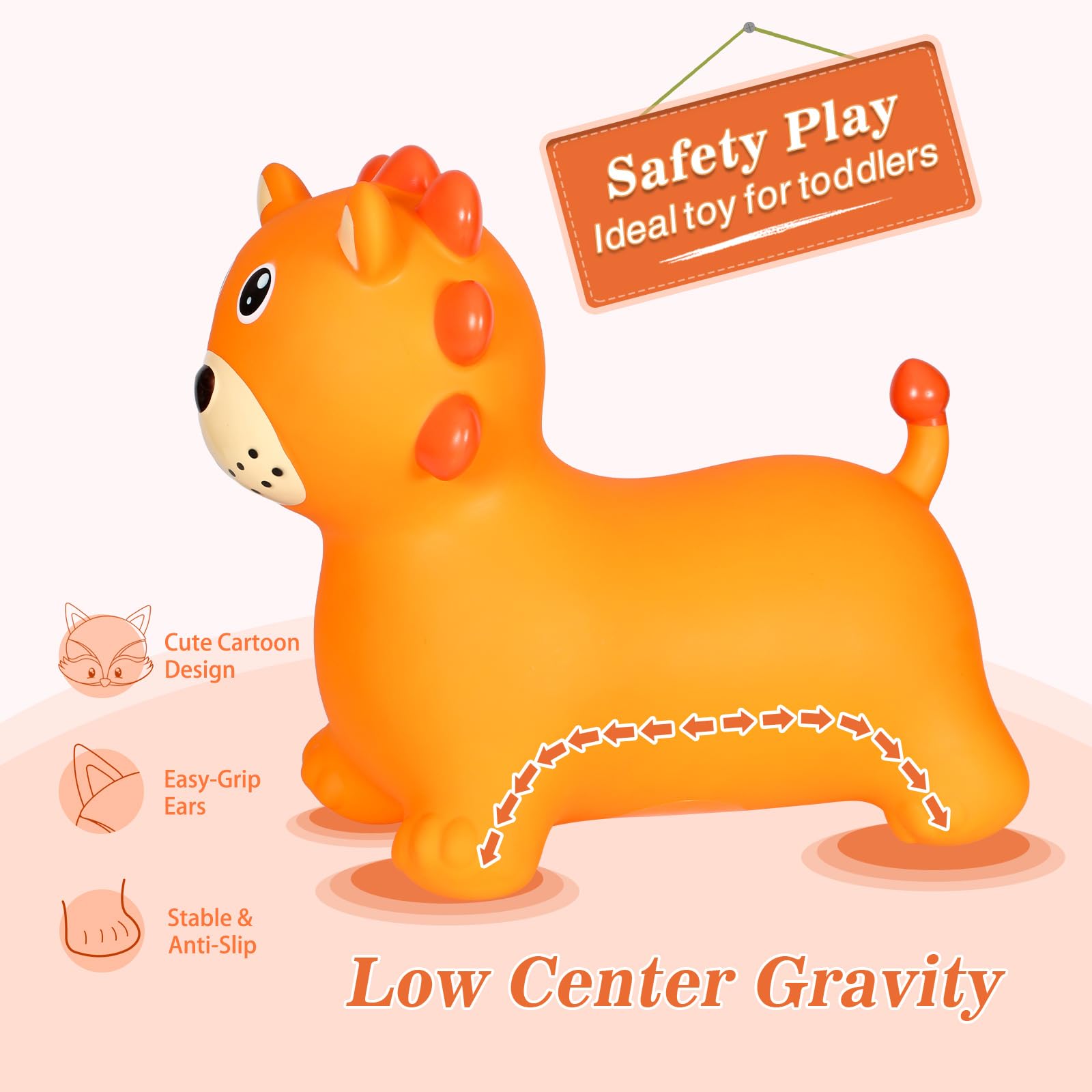- Q: What benefits does playing with the bouncy animal provide for my child? A: Playing with the bouncy lion helps exercise your child's legs and arms, enhances balance and coordination, and promotes brain development through active and engaging play. It also encourages laughter and fun.